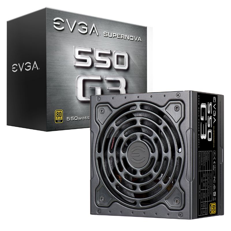 Descripción EVGA SuperNOVA 550 G3. Potencia total: 550 W, Voltaje de entrada AC: 115 - 240, Frecuencia de entrada AC: 50 - 60. Número de ventiladores: 1 Ventilador(es), Ubicación de ventilador: Superior, Tipo de enfriamiento: Activo. Alimentador de energía para tarjeta madre: 24-pin ATX, Tipo de cableado: Modular. Utilizar con: PC, Power supply unit (PSU) form factor: ATX, Tiempo medio entre fallos: 100000 h. Color del producto: Negro