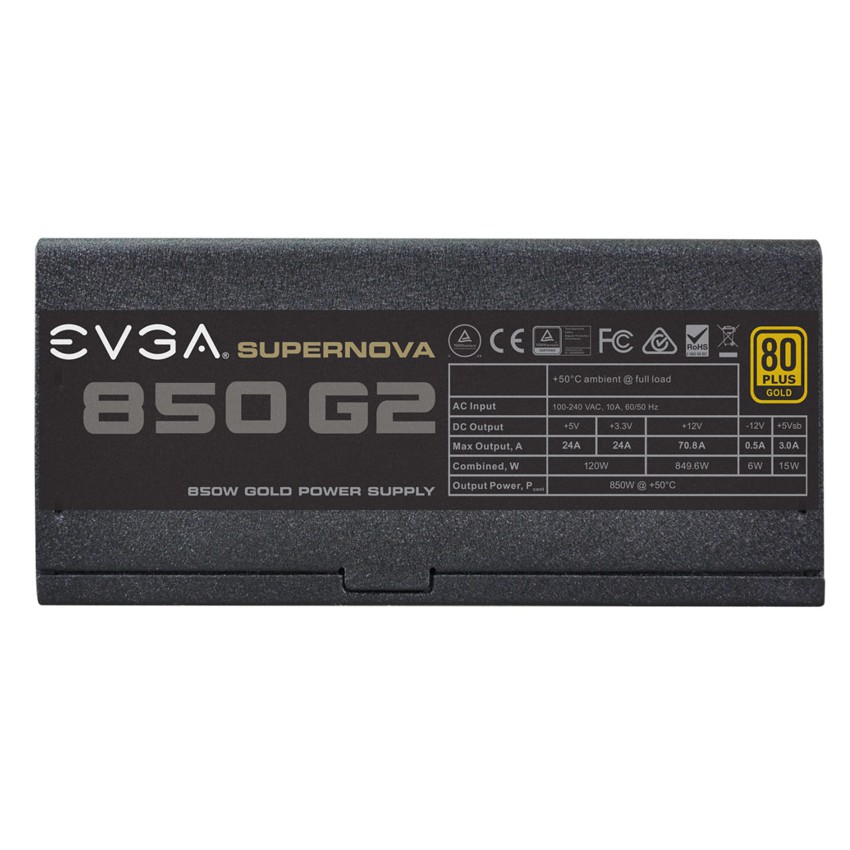 Descripción EVGA SuperNOVA 850 G2. Potencia total: 850 W, Voltaje de entrada AC: 100 - 240, Frecuencia de entrada AC: 50 - 60. Diámetro de ventilador: 14 cm, Número de ventiladores: 1 Ventilador(es), Ubicación de ventilador: Superior. Alimentador de energía para tarjeta madre: 20+4 pin ATX, Tipo de cableado: Modular. Utilizar con: PC, Power supply unit (PSU) form factor: ATX, Soporte para proceso paralelo: 2-Way CrossFireX,2-Way SLI. Color del producto: Negro