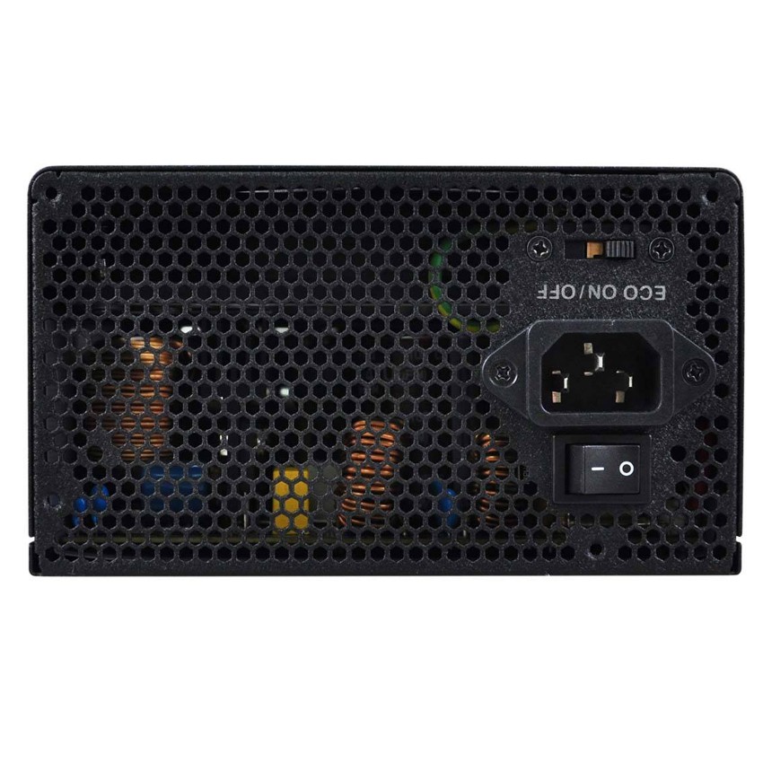 Especificaciones Potencia total: 850 W Voltaje de entrada AC: 100 - 240 Frecuencia de entrada AC: 50 - 60 Corriente de entrada: 10 Potencia combinada (3,3 V): 120 W Potencia combinada (+12 V): 849,6 W Potencia combinada (+5 V): 120 W Potencia combinada (-12V): 6 W Potencia combinada (+5 VSB): 15 W Corriente máxima de salida (+3.3V): 24 A Corriente máxima de salida (+12V): 70,8 A Corriente máxima de salida (+5V): 24 A Corriente máxima de salida (-12V): 0,5 A Corriente máxima de salida (+5Vsb): 3 A Eficiencia: 92% Funciones de protección de poder: Sobreintensidad, Sobretensión, Sobrevoltaje, Sobrecalentamiento, Cortocircuito, Bajo voltaje Protección contra sobrecalentamiento: Si Diámetro de ventilador: 14 cm Número de ventiladores: 1 Ventilador(es) Ubicación de ventilador: Superior Tipo de enfriamiento: Activo Alimentador de energía para tarjeta madre: 20+4 pin ATX Conectores de poder (4 pin) periferales (Molex): 4 Número de conectores de energía SATA: 10 Conector de energía EPS (8-pin): Si Conectores de poder PCI Express (6 pin): 2 Conectores de poder PCI Express (6 + 2 pin): 4 CPU P4 conector (4-pin): 4 CPU conector de alimentación (4 +4 pines): Si Conector de poder ATX (20 + 4 pin): Si Conector de poder floppy: 1 Conector Express PCI: Si Conector a unidad de disquetes: Si Tipo de cableado: Modular Utilizar con: PC Factor de forma de fuente de alimentación (PSU): ATX Soporte para proceso paralelo: 2-Way CrossFireX,2-Way SLI Interruptor de encendido/apagado integrado: Si Tiempo medio entre fallos: 100000 h Color del producto: Negro Cables incluidos: Corriente alterna Intervalo de temperatura operativa: 0 - 50 °C Ancho: 150 mm Profundidad: 180 mm Altura: 85 mm Peso: 3,63 kg Certificación 80 PLUS: 80 PLUS Gold Acorde RoHS: Si Certificación: TUV, CB, CE, FCC, RCM, cTUVus, BSMI, WEEE