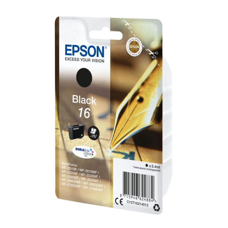 Especificaciones Peso y dimensiones Altura del paquete 102 mm Ancho del paquete 145 mm Profundidad del paquete 26 mm Tipo de embalaje Ampolla Características Cantidad por paquete 1 pieza(s) Cantidad de cartuchos de tinta negra 1 Colores de impresión Negro Código OEM C13T16214012 Marca compatible Epson País de origen China Rendimiento de impresión de página con tinta negra 175 páginas Tecnología de impresión Inyección de tinta Tipo Original Tipo de tinta Tinta a base de pigmentos Volumen de tinta negra 5,4 ml Datos logísticos Alto de la caja principal 14,6 cm Altura del palé 60 cm Ancho de la caja principal 10,2 cm Anchura del palé 80 cm Cantidad por palé 3400 pieza(s) Cantidad por caja 10 pieza(s) Cantidad por palé (Reino Unido) 3400 pieza(s) Cantidad por capa de palet 340 pieza(s) Cantidad por capa de palé (Reino Unido) 340 pieza(s) Cantidad mínima del pedido 10 pieza(s) Longitud del palé 120 cm Longitud de la caja 26 cm