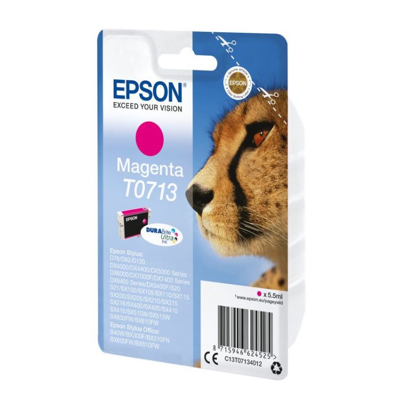 Especificaciones Peso y dimensiones Altura del paquete 102 mm Ancho del paquete 145 mm Profundidad del paquete 26 mm Tipo de embalaje Ampolla Características Cantidad por paquete 1 pieza(s) Cantidad de cartuchos de tinta de color 1 Colores de impresión Magenta Código OEM C13T07134012 Marca compatible Epson País de origen China Tecnología de impresión Inyección de tinta Tipo Original Tipo de tinta Tinta a base de pigmentos Volumen de tinta de color 5,5 ml Datos logísticos Alto de la caja principal 14,6 cm Altura del palé 15 cm Ancho de la caja principal 10,2 cm Anchura del palé 80 cm Cantidad por palé 3400 pieza(s) Cantidad por caja 10 pieza(s) Cantidad por palé (Reino Unido) 3400 pieza(s) Cantidad por capa de palet 340 pieza(s) Cantidad por capa de palé (Reino Unido) 340 pieza(s) Cantidad mínima del pedido 10 pieza(s) Longitud del palé 120 cm Longitud de la caja 26 cm