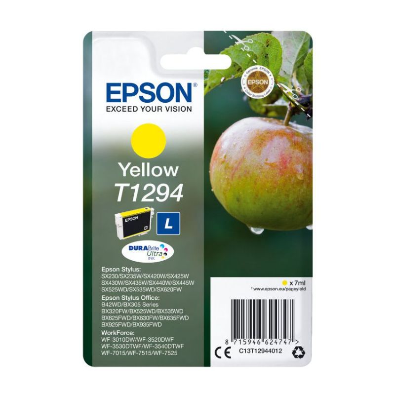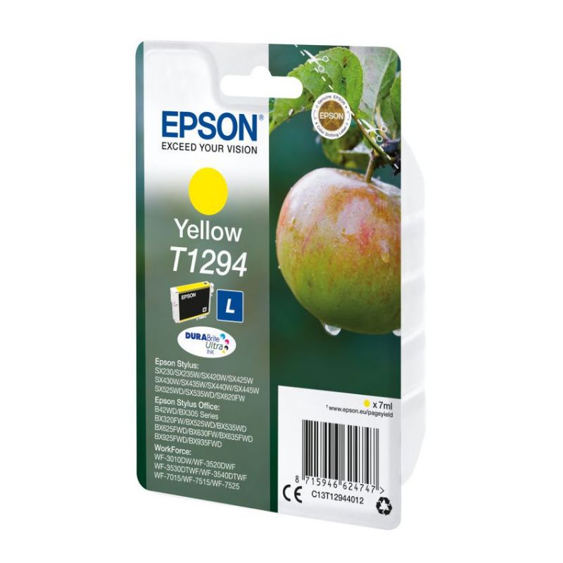 Especificaciones Peso y dimensiones Altura del paquete 94 mm Ancho del paquete 25 mm Profundidad del paquete 145 mm Tipo de embalaje Ampolla Características Cantidad por paquete 1 pieza(s) Cantidad de cartuchos de tinta de color 1 Colores de impresión Amarillo Código OEM C13T12944012 Marca compatible Epson País de origen China Rendimiento de impresión de página con tinta de color 616 páginas Tecnología de impresión Inyección de tinta Tipo Original Tipo de tinta Tinta a base de pigmentos Volumen de tinta de color 7 ml Datos logísticos Alto de la caja principal 14,6 cm Altura del palé 15 cm Altura del palé (Reino Unido) 2 m Ancho de la caja principal 10,2 cm Anchura del palé 80 cm Anchura del palé (Reino Unido) 100 cm Cantidad por palé 3400 pieza(s) Cantidad por caja 10 pieza(s) Cantidad por palé (Reino Unido) 3400 pieza(s) Cantidad por capa de palet 340 pieza(s) Cantidad por capa de palé (Reino Unido) 340 pieza(s) Cantidad mínima del pedido 10 pieza(s) Longitud del palé 120 cm Longitud de la caja 26 cm Longitud del palé (Reino Unido) 120 cm