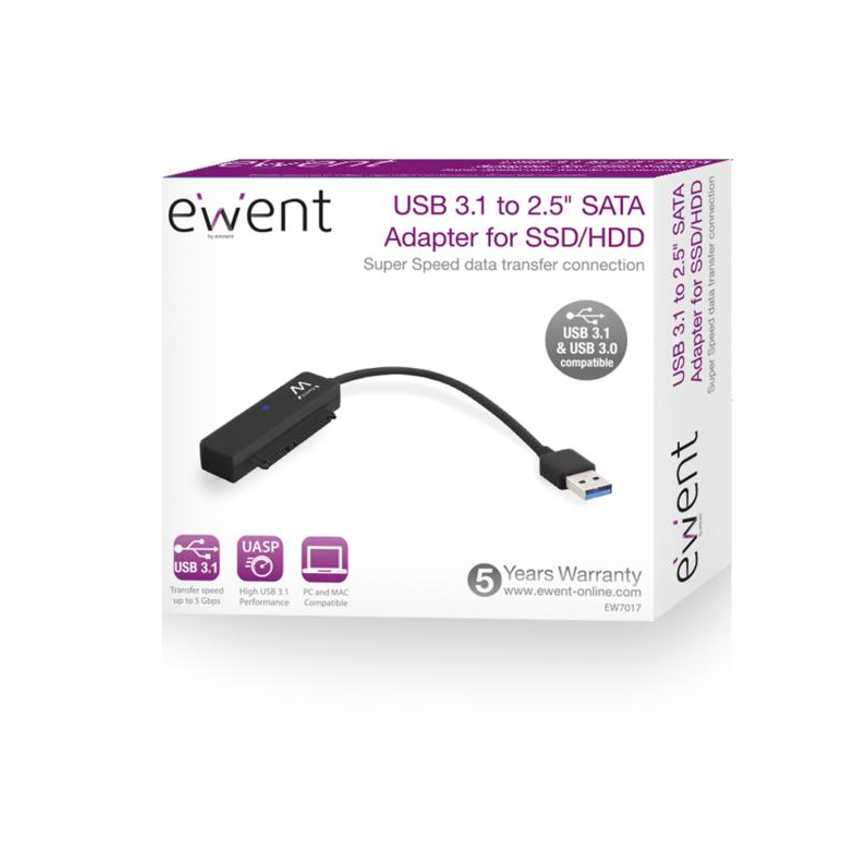 Descripción Ewent EW7017. Interfaz de host: USB Type-A, Interfaz de salida: SATA, Revisión SATA: 3.0. Color del producto: Negro. Sistema operativo Windows soportado: Windows 10 Education, Windows 10 Education x64, Windows 10 Enterprise, Windows 10 Enterprise x64, Wi, Sistema operativo MAC soportado: Mac OS X 10.10 Yosemite, Mac OS X 10.3 Panther, Mac OS X 10.4 Tiger, Mac OS X 10.5 Leopard, Mac OS X. Ancho: 7 cm, Profundidad: 1,82 cm, Altura: 1,25 cm