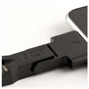 - Cable retráctil con 3 conexiones diferentes de las más utilizadas - Conexiones Mini-USB (5 contactos), Micro-USB y base de acoplamiento (Apple de 30 contactos) - Sincronización y carga - La longitud máxima del cable es de 75 cm