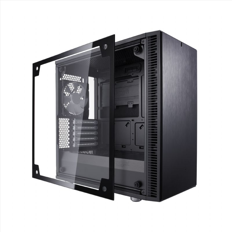 Descripción Fractal Design Define Mini C TG. Factor de forma: Mini-Tower, Tipo: PC, Formas de factor de tarjeta madre soportadas: ITX,Mini-ATX. Factores de forma de la fuente de alimentación compatibles: ATX. Ventiladores frontales instalados: 1x 120 mm, Diámetro de ventiladores frontales soportados: 120,140 mm, Ventiladores traseros instalados: 1x 120 mm. Tamaños de disco duro soportados: 2.5,3.5". Ancho: 217 mm, Profundidad: 412 mm, Altura: 413 mm