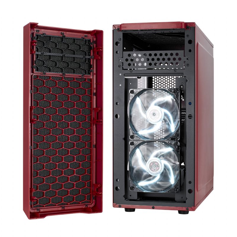 Descripción Fractal Design Focus G. Factor de forma: Midi-Tower, Tipo: PC, Color del producto: Negro, Rojo. Ubicación de fuente de alimentación: Fondo, Factores de forma de la fuente de alimentación compatibles: ATX. Ventiladores frontales instalados: 2x 120 mm, Diámetro de ventiladores frontales soportados: 120,140 mm, Diámetro de ventiladores traseros soportados: 120 mm. Tamaños de disco duro soportados: 2.5,3.5". Ancho: 205 mm, Profundidad: 464 mm, Altura: 444 mm