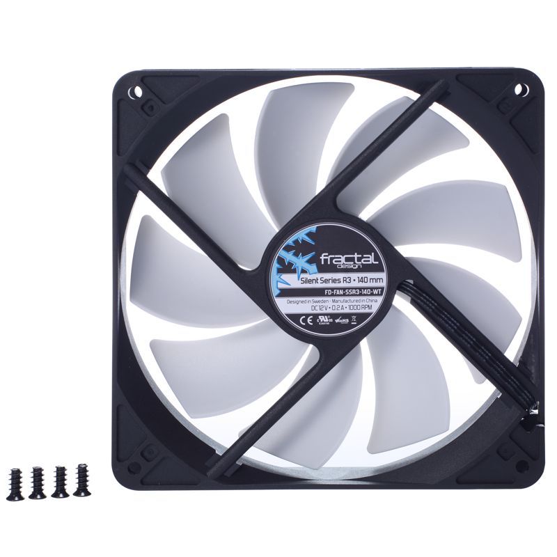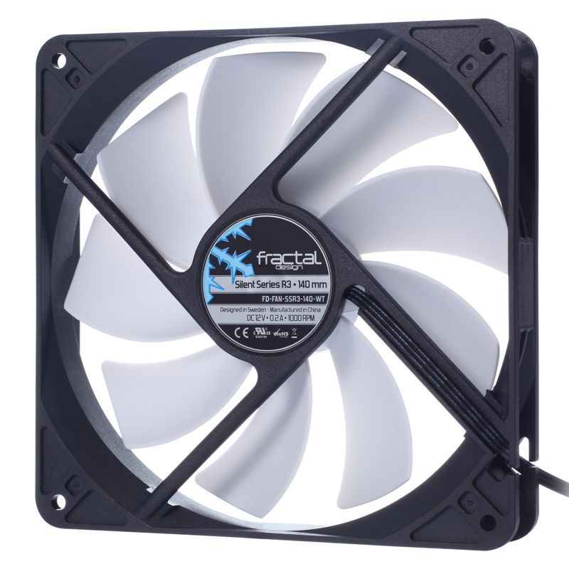 Descripción Fractal Design Silent Series R3 140mm. Adecuado para: Carcasa del ordenador, Tipo: Ventilador, Diámetro de ventilador: 14 cm. Color del producto: Negro, Blanco, Longitud de cable: 0,35 m. Fuente de alimentación: 1,6 W, Máxima corriente: 0,2 A. Ancho: 140 mm, Profundidad: 140 mm, Altura: 25 mm. Patrón de agujeros de montaje (H x V): 125 x 125 mm