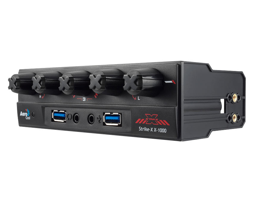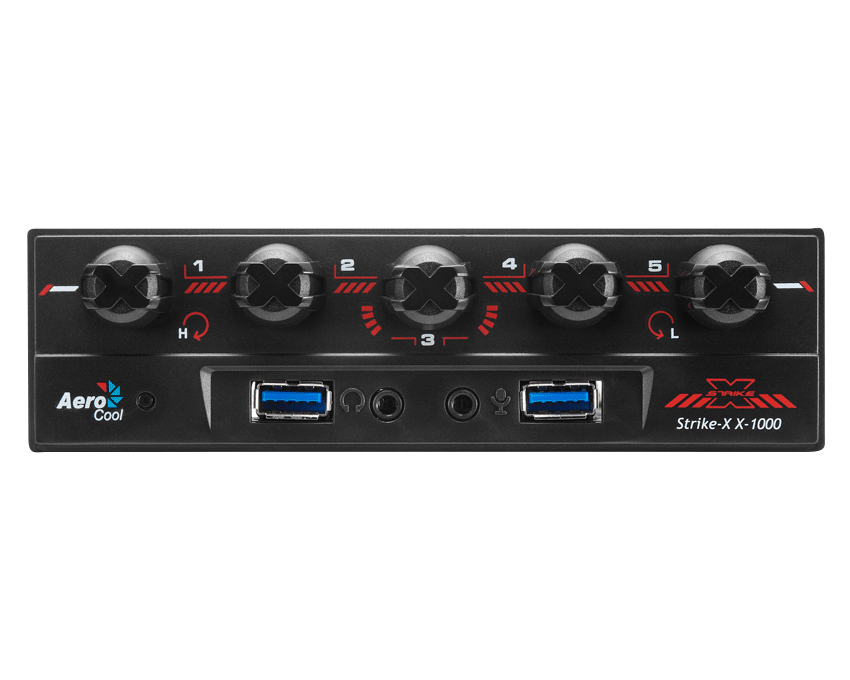 De la serie Strike X, el nuevo controlador de ventiladores Strike X X-1000 es una herramienta imprescindible para los jugadores de PC y para los potentes ususa- rios de ordenadores para quienes el ruido, la temperatura de los componentes y la refrigueración en general son su mayor preocupación a la hora de lograr la mayor eficiencia para sus equipos. Como todos los productos Strike X, el Strike X X-1000, lleva la X de marca dis- tintiva tanto por la forma de los botones de control como por la inconfundible estética gamer rojo-negro.