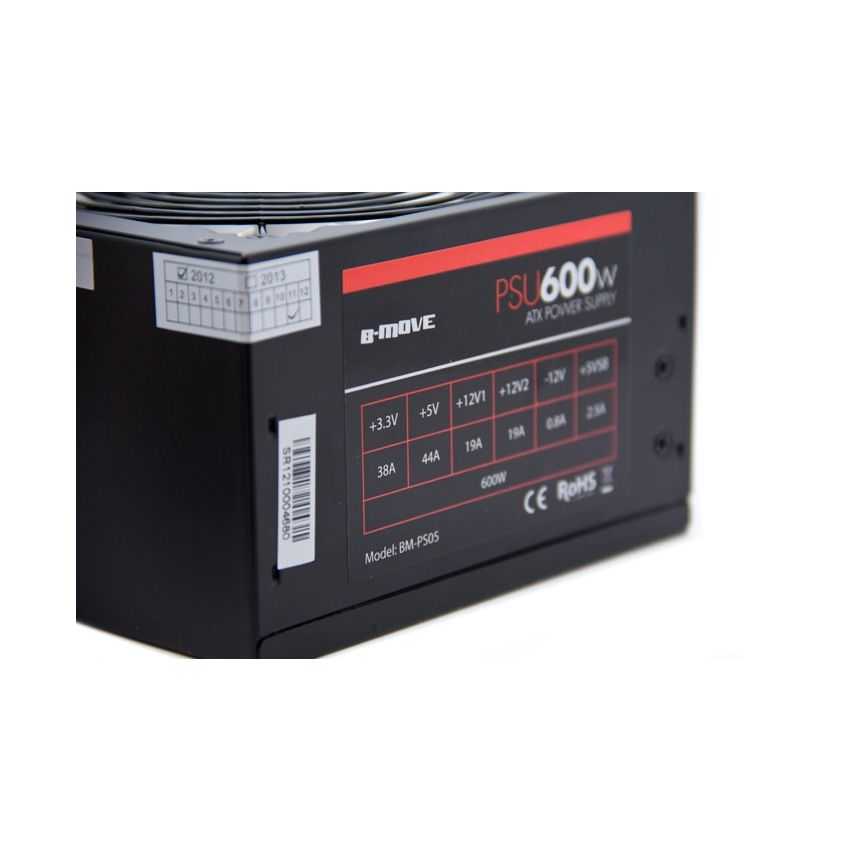 Descripción Fuente de alimentación de 600W de la serie Retail, con más prestaciones y mejor estética. Incluye un ventilador de 12 cm en la parte inferior de color blanco y un conector PCI Express. Las nuevas fuentes B-Move están creadas para ofrecer más posibilidades dentro de tu equipo. Con un nuevo diseño y nuevos voltajes para satisfacer las necesidades de los usuarios más exigentes y que puedas elegir la que más se ajuste a tus necesidades. Make your move.