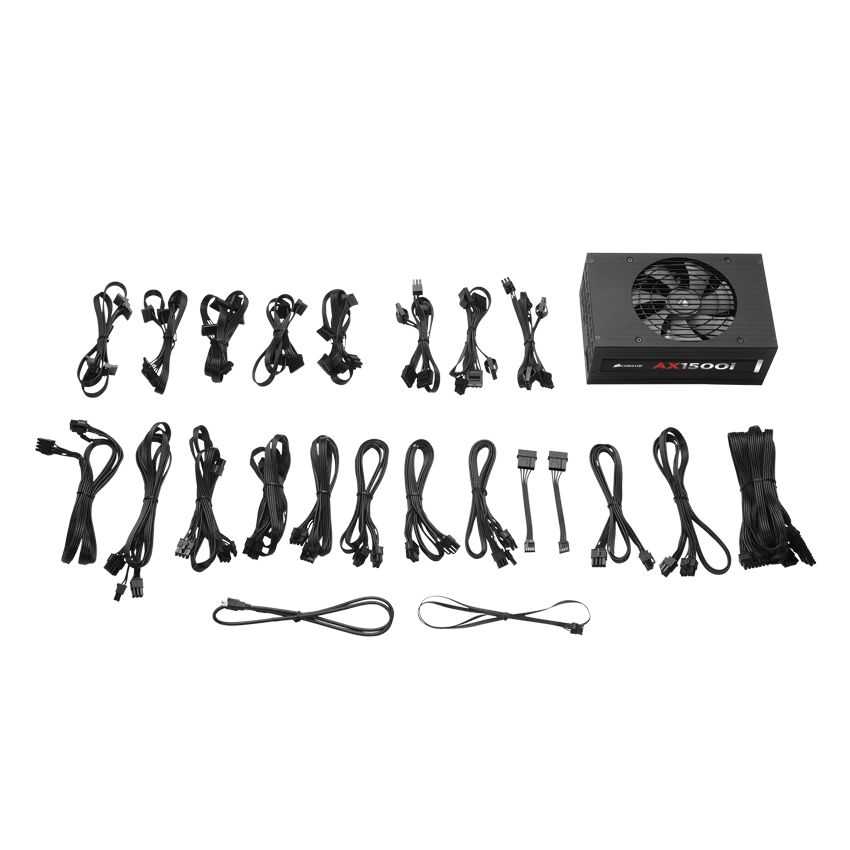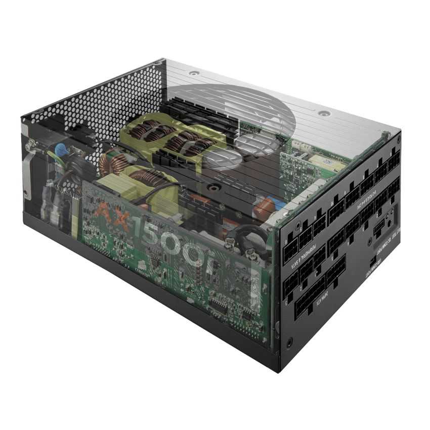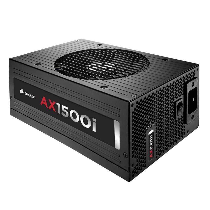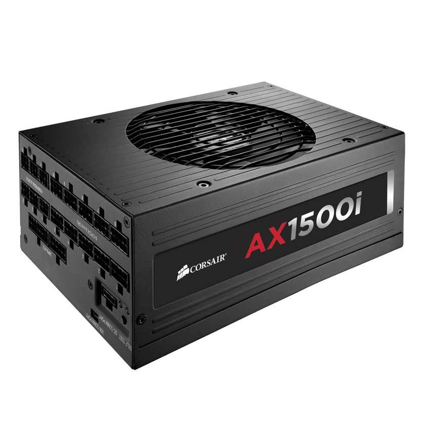Descripción Corsair AX1500i. Potencia nominal: 1500W, Voltaje de entrada AC: 90 - 264V, Frecuencia de entrada AC: 50 - 60 Hz. Diámetro de ventilador: 14 cm, Ubicación de ventilador: Superior, Tipo de enfriamiento: Activo. Alimentador de energía para tarjeta madre: 24-pin ATX, Tipo de cableado: Modular. Factor de forma: ATX, Utilizar con: PC, Versión ATX: 2.4. Color del producto: Negro