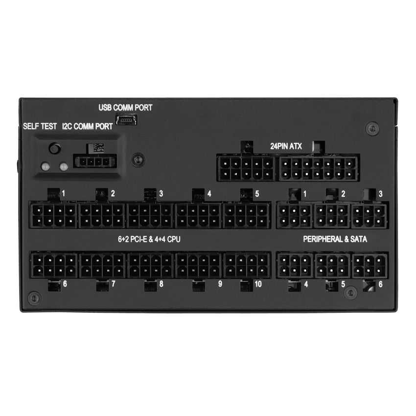 Especificaciones Potencia nominal: 1500W Voltaje de entrada AC: 90 - 264V Frecuencia de entrada AC: 50 - 60 Hz Corriente de entrada: 15A Factor de poder: 0.99 Corrección del factor de potencia tipo (PFC): Activo Voltaje de salida CC: +12V, +3.3V, +5V, +5Vsb, -12V Potencia combinada (3,3 V): 180W Potencia combinada (+12 V): 1500W Potencia combinada (+5 V): 180W Potencia combinada (-12V): 9,6W Potencia combinada (+5 VSB): 17,5W Corriente máxima de salida (+3.3V): 30A Corriente máxima de salida (+12V): 125A Corriente máxima de salida (+5V): 30A Corriente máxima de salida (-12V): 0,8A Corriente máxima de salida (+5Vsb): 3,5A Eficiencia: 94% Funciones de protección de poder: Over current, Sobrevoltaje, Cortocircuito, Bajo voltaje Diámetro de ventilador: 14 cm Número de ventiladores: 1 Ubicación de ventilador: Superior Tipo de enfriamiento: Activo Alimentador de energía para tarjeta madre: 24-pin ATX Número de conectores de energía SATA: 20 Conectores de poder (4 pin) periferales (Molex): 12 Conector de energía EPS (8-pin): Si Conectores de poder PCI Express (6 + 2 pin): 10 CPU conector de alimentación (4 +4 pines): Si Conector de potencia ATX (24 pines): Si Conector de poder floppy: 2 Conector Express PCI: Si Conector a unidad de disquetes: Si Tipo de cableado: Modular Factor de forma: ATX Utilizar con: PC Versión ATX: 2.4 Versión EPS: 2.92 Interruptor de encendido/apagado integrado: Si Tiempo medio entre fallos: 100000h Color del producto: Negro Ancho: 15 cm Profundidad: 22,5 cm Altura: 8,6 cm Certificación 80 PLUS: 80 PLUS Titanium Certificación: cTUVus, TÃ?V, CCC, CE, RCM, CU, KC Mark, FCC