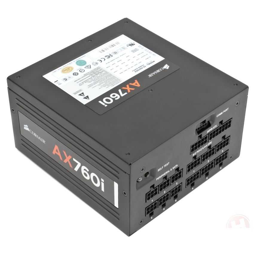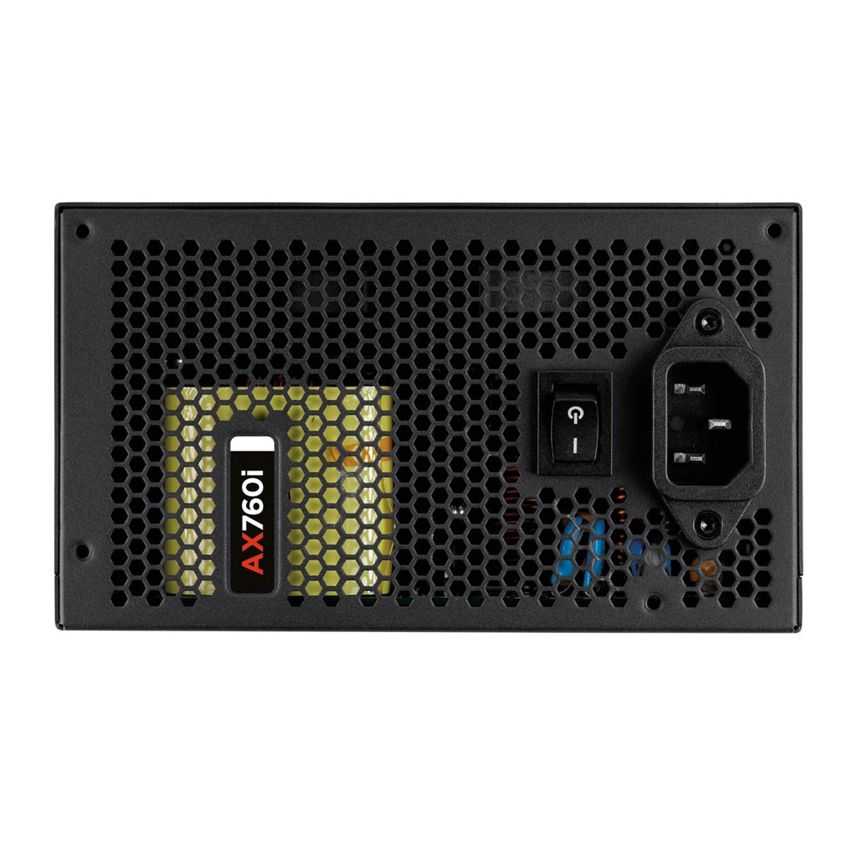 Descripción Corsair AX760i 80Plus Platinum. Potencia nominal: 760W, Voltaje de entrada AC: 100 - 240V, Frecuencia de entrada AC: 50 - 60 Hz. Diámetro de ventilador: 12 cm, Tipo de enfriamiento: Activo. Alimentador de energía para tarjeta madre: 24-pin ATX. Factor de forma: ATX, Utilizar con: PC, Versión ATX: 2.31. Color del producto: Negro