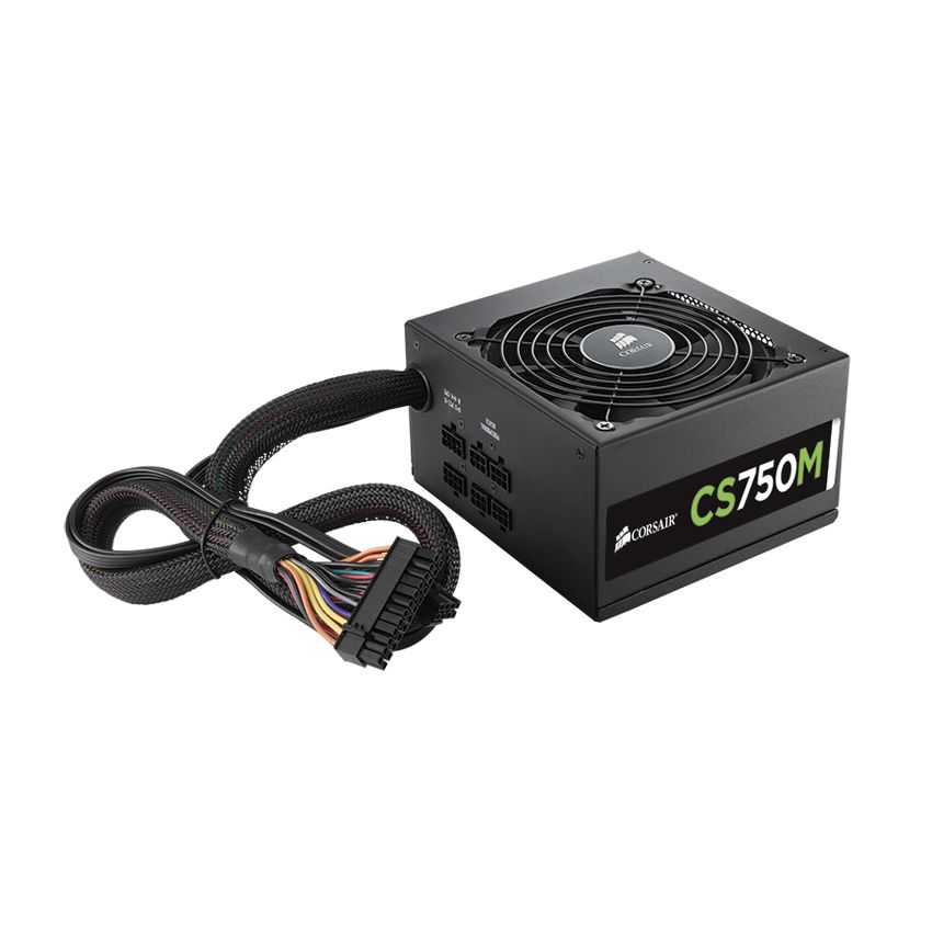 Descripción Corsair CS750M. Potencia nominal: 750W, Voltaje de entrada AC: 100 - 240V, Frecuencia de entrada AC: 47 - 63 Hz. Ubicación de ventilador: Superior, Tipo de enfriamiento: Activo. Alimentador de energía para tarjeta madre: 20+4 pin ATX, Tipo de cableado: Modular. Factor de forma: ATX, Utilizar con: PC, Versión ATX: 2.4. Color del producto: Negro