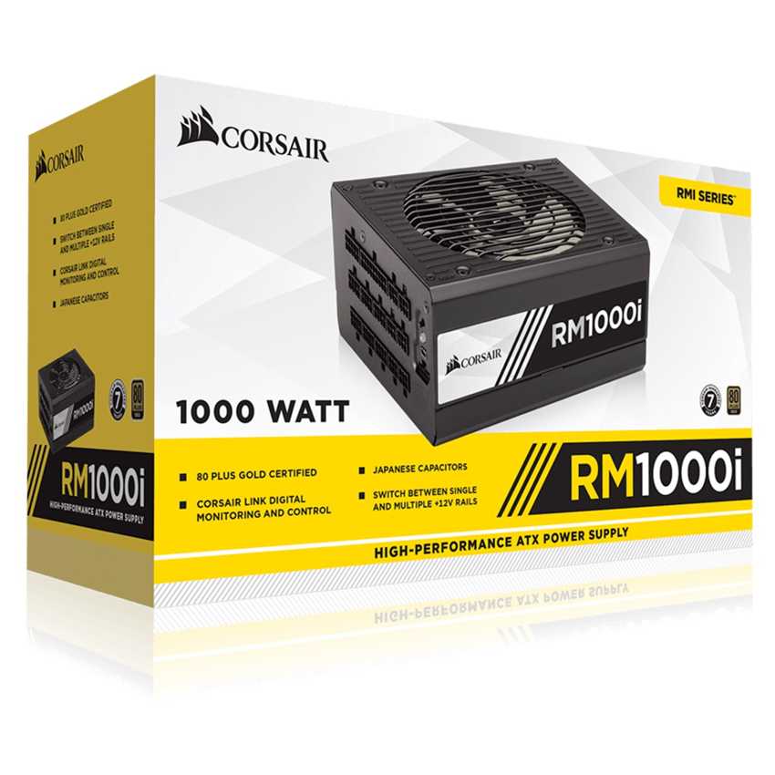 Descripción Corsair RM1000i. Potencia nominal: 1000 W, Voltaje de entrada AC: 100 - 240 V, Frecuencia de entrada AC: 47 - 63 Hz. Diámetro de ventilador: 13,500 cm, Ubicación de ventilador: Superior, Tipo de enfriamiento: Activo. Alimentador de energía para tarjeta madre: 20+4 pin ATX, Tipo de cableado: Modular. Factor de forma: ATX, Utilizar con: PC/server, Tiempo medio entre fallos: 1000000 h. Color del producto: Negro