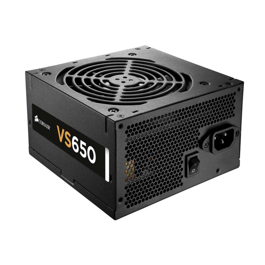 Descripción Corsair VS650. Potencia nominal: 650 W, Máxima energía: 715 W, Voltaje de entrada AC: 200 - 240 V. Diámetro de ventilador: 12 cm, Ubicación de ventilador: Superior, Velocidad de ventilador: 1665 RPM. Alimentador de energía para tarjeta madre: 20+4 pin ATX, Tipo de cableado: Fijo. Factor de forma: ATX, Utilizar con: PC, Versión ATX: 2.31. Color del producto: Negro