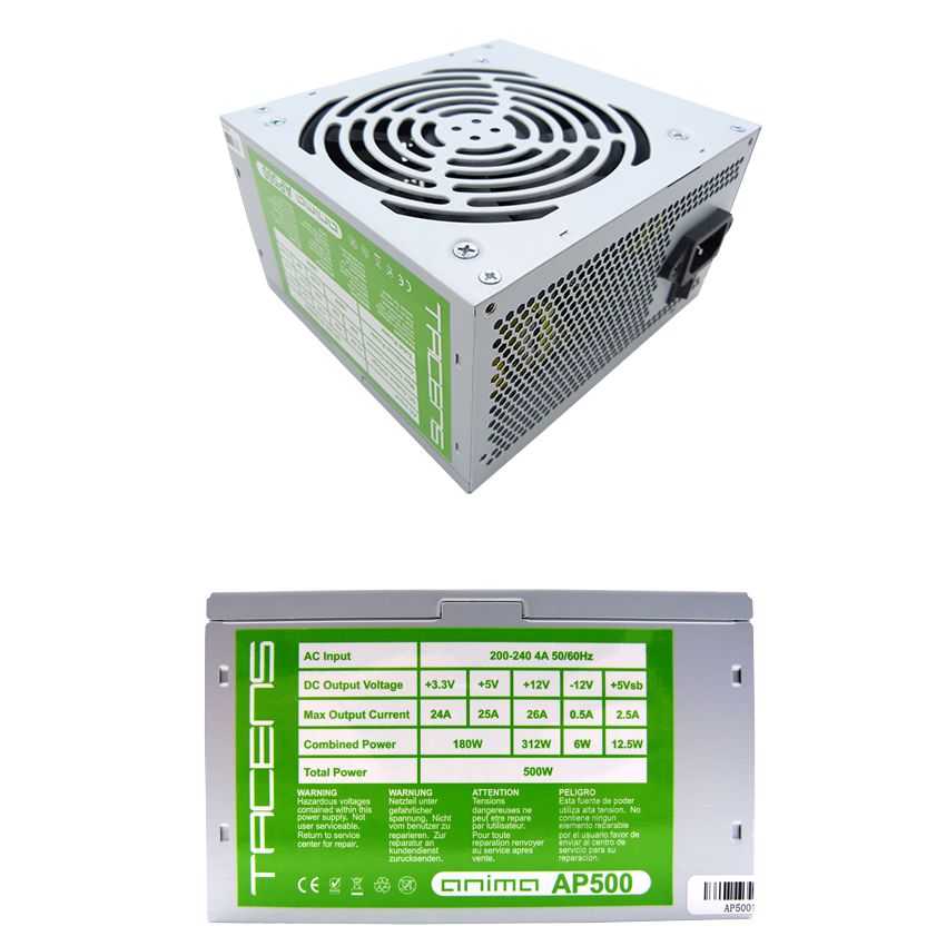La nueva fuente AP500 dispone de un ventilador Tacens ultrasilencioso de 12 cm y 14 dB con control de velocidad térmico inteligente y un sistema antivibraciones.