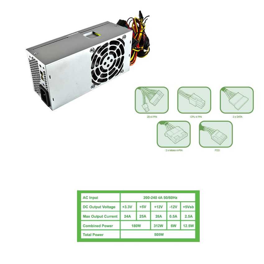 Potencia Su potente tecnología de rail único de 12V la capacitan para un rendimiento extremadamete estable y potente. Cableado La fuente de alimentación APT500 incluye unos cables largos para una mayor compatibilidad 1 x 20+4pin / 1 x 12V 4pin / 2 x SATA / 2 x PATA / 1 x FDD Ingeniería Europea Esta nueva fuente TFX ha sido fabricada conforme a las directivas y normas exigidas por la Unión Europea. Dispone de protecciones eléctricas y filtrado de grado industrial para un funcionamiento seguro. Además, está preparada para procesadores Intel de cuarta generación “Haswell”