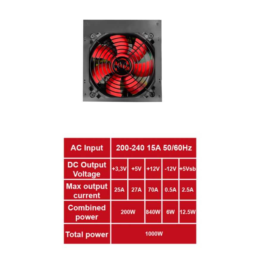 Esta fuente de alimentación de 1000W incluye un ventilador más grande, de 14 cm y 14 dB apenas perceptibles, que incluye un sistema inteligente con control de velocidad y un sistema antivibraciones. Asimismo, cumple con todas las normas europeas y está preparada para nuevos procesadores Intel Haswell.