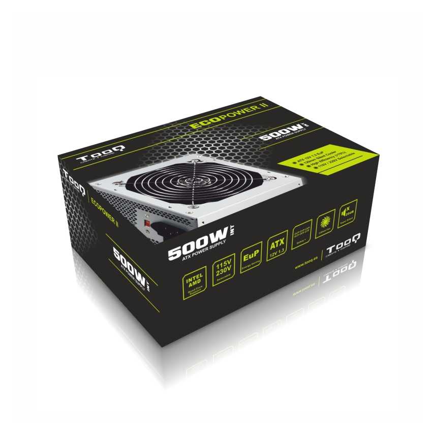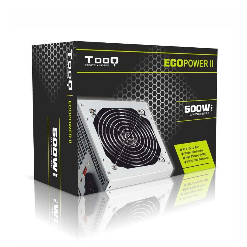 Descripción Ecopower II es la nueva generación de las fuentes Ecopower de TOOQ. La nueva versión de fuentes incluye ACTIVE PFC (PFC ACTIVO, PF>0.99, no todos los modelos llevan PFC ACTIVO) de alta calidad, por lo que se garantiza al menos un 78% de eficiencia. Con la tecnología PFC Activo, la fuente produce mucho menos calor que una fuente con PFC Pasivo, con lo cual se puede prolongar la vida útil de la fuente. Además, la serie Ecopower II lleva ventilador súper silencioso de alta calidad, doble raíl +12V muy estable y protecciones del sistema electrónico de alta tecnología.