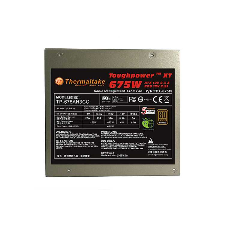Fuente modular THERMALTAKE New Toughpower XT 675W Cod. Producto: Q-3224   ||  Fabricante: THERMALTAKE Part Number:    Stock: 0 Unidades Descatalogado