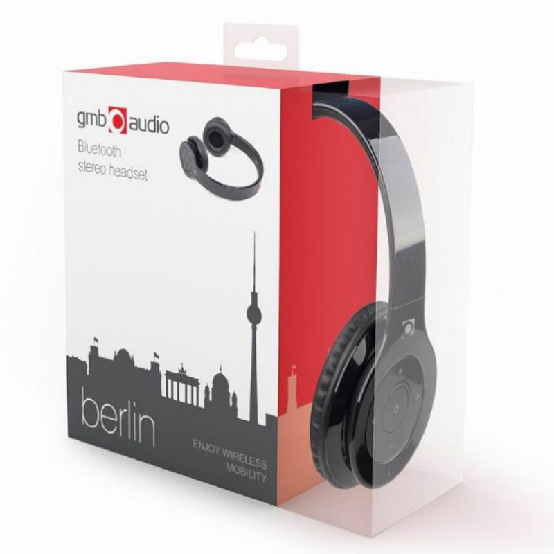 Descripción Gembird Berlin. Tipo de producto: Auriculares, Estilo de uso: Diadema, Uso recomendado: Llamadas y música. Tecnología de conectividad: Inalámbrico, Perfiles de Bluetooth: A2DP,AVRCP,HFP,HSP, Alcance inalámbrico: 10 m. Audifonos: Circumaural, Frecuencia de auricular: 20 - 20000 Hz, Obstrucción: 32 O. Tipo de micrófono: Integrado, Tipo de dirección de micrófono: Omnidireccional. Tipo de batería: Batería integrada, Tecnología de batería: Ión de litio, Capacidad de batería: 250 mAh
