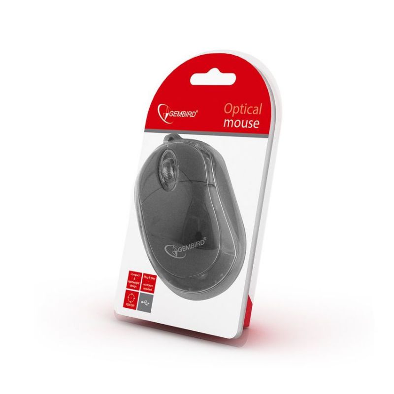 Descripción Gembird MUS-U-01-BKT. Factor de forma: Ambidextro. Tecnología de detección de movimientos: Óptico, Interfaz del dispositivo: USB tipo A, Resolución de movimiento: 1000 DPI, Tipo de botones: Botones presionados, Cantidad de botones: 3, Tipo de desplazamiento: Rueda. Fuente de energía: Cable. Trabaja en cualquier superficie. Color del producto: Negro