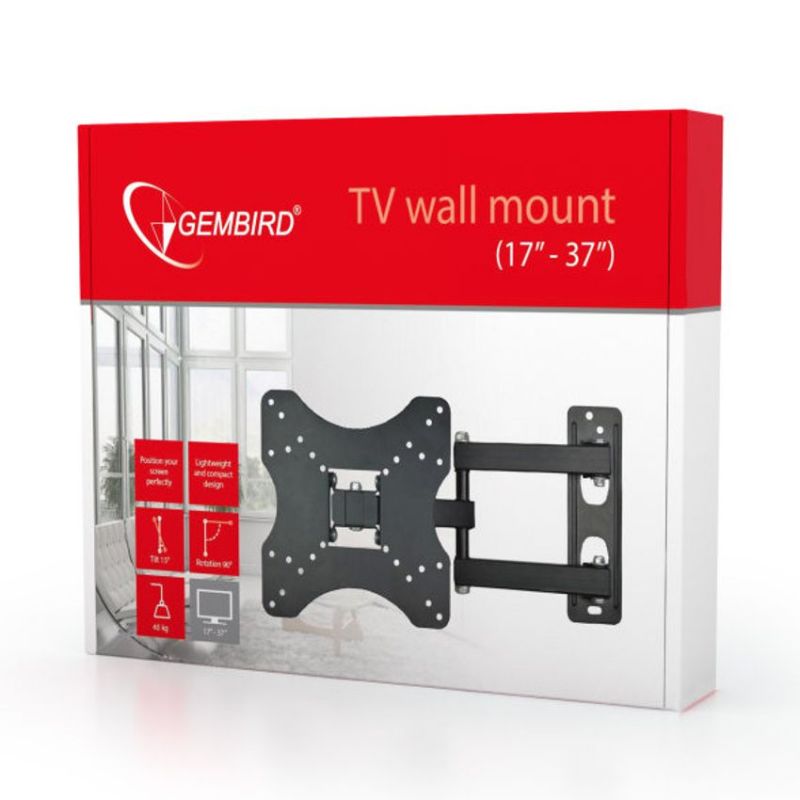 - Montaje de pared para pantalla LCD de acero resistente - Soporta más de 17 "- 37" LCD / TV de plasma - VESA compatible, max. 200 mm x 200 mm - Permite hasta 90 grados de rotación y 15 grados de inclinación - Distancia a la pared: 70 - 420 mm - Incluye todos los materiales necesarios para la instalación