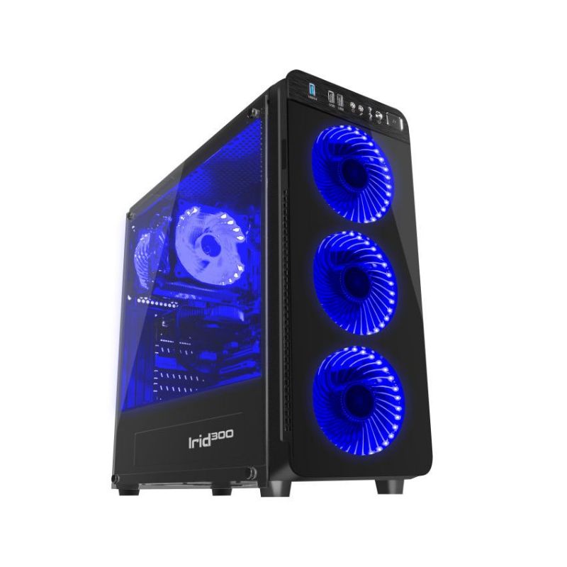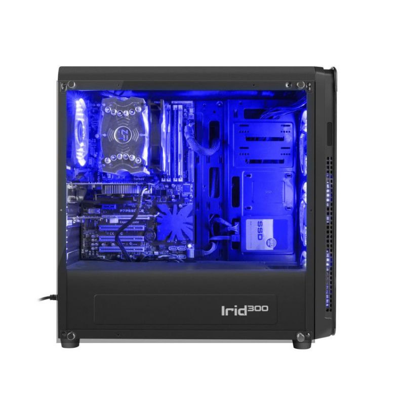 Descripción GENESIS Irid 300. Factor de forma: Midi Tower, Tipo: PC, Material: Acrilonitrilo butadieno estireno (ABS), Acero, Vidrio templado. Ubicación de fuente de alimentación: Fondo. Ventiladores frontales instalados: 3x 120 mm, Diámetro de ventiladores frontales soportados: 120 mm, Ventiladores traseros instalados: 1x 120 mm. Tamaños de disco duro soportados: 2.5,3.5". Ancho: 212 mm, Profundidad: 466 mm, Altura: 467 mm