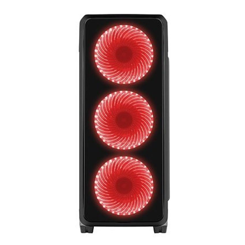 Especificaciones Puertos e Interfaces Cantidad de puertos tipo A USB 3.2 Gen 1 (3.1 Gen 1) 1 Cantidad de puertos USB 2.0 2 Entrada de audio Si Salida de audio Si Peso y dimensiones Altura 439 mm Ancho 190 mm Peso 4,5 kg Profundidad 448 mm Enfriamiento Diámetro de ventiladores frontales soportados 120 mm Diámetro de ventiladores traseros soportados 120 mm Diámetros de ventiladores superiores soportados 120 mm Número de ventiladores frontales soportados (max.) 3 Número de ventiladores posteriores soportados 1 Número de ventiladores superiores soportados 1 Refrigeración Si Ventiladores frontales instalados 3x 120 mm Ventiladores traseros instalados 1x 120 mm Otras características Manual de usuario Si Medios de almacenaje Tamaños de disco duro soportados 2.5,3.5" Diseño Número de bahías 2.5'' 2 Número de puertos 3.5" 2 Adecuado para Juego Altura máxima de la CPU más fresco 15,5 cm Certificación CE, RoHS Color del producto Negro, Rojo Factor de forma Torre Filtro anti-polvo Si Formas de factor de tarjeta madre soportadas ATX,Micro ATX,Mini-ITX Iluminación Si Iluminación de color Rojo Iluminación ubicación Ventiladores de la caja, Frente, Interno Material ABS sintéticos, SPCC Máxima longitud de la tarjeta de gráficos 38,5 cm Número de ranuras de expansión 7 Tipo PC Ventana lateral Si