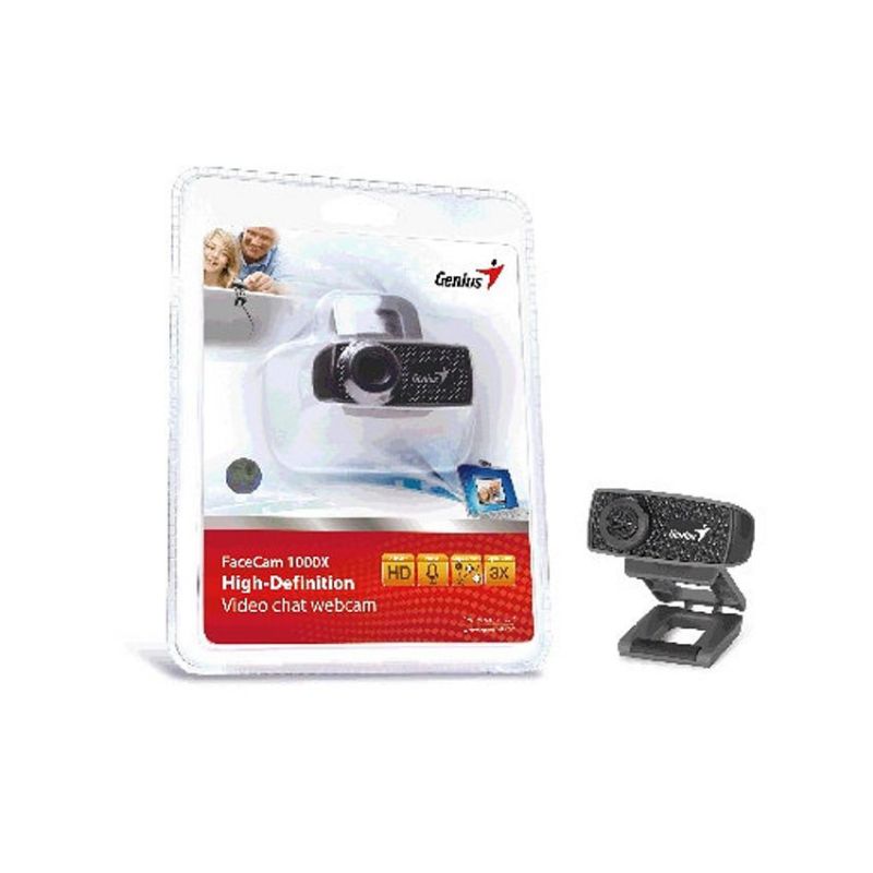 Descripción Genius FaceCam 1000X. Megapixeles: 1 MP, Máxima resolución de video: 1280 x 720 Pixeles, Velocidad máxima de cuadro: 30 pps. Interfaz: USB 2.0, Color del producto: Negro, Tipo de montaje: Clip/Soporte. Sistema operativo Windows soportado: Windows 7 Home Basic,Windows 7 Home Premium,Windows 7 Professional,Windows 8,Windows 8 Pro,Windows..., Sistema operativo MAC soportado: Mac OS X 10.4 Tiger,Mac OS X 10.5 Leopard,Mac OS X 10.6 Snow Leopard,Mac OS X 10.7 Lion,Mac OS X.... Ancho: 60 mm, Profundidad: 20 mm, Altura: 22 mm