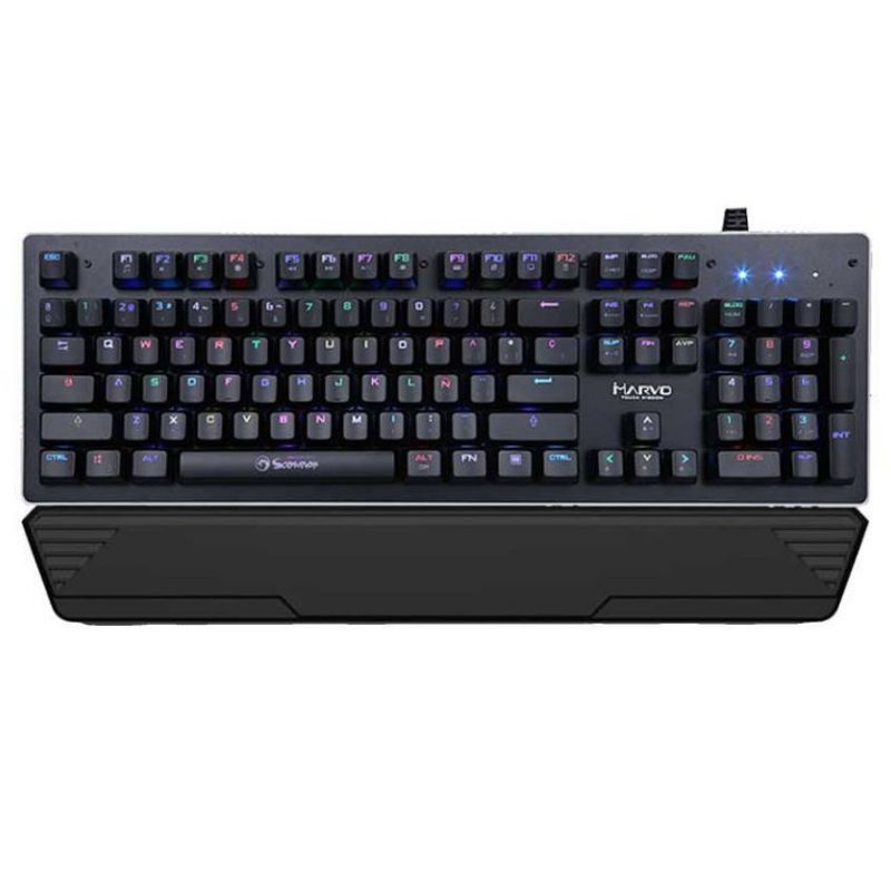 - Teclado Mecánico - Switch Outemu Blue - 55g de Presión - Ideal Para Gaming Y Escritura - Luces Led Rgb Configurables - Reposamuñecas - Cable Trenzado - Conector Usb Chapado En Oro