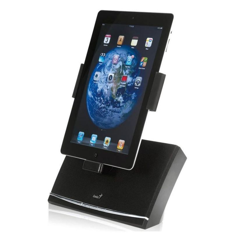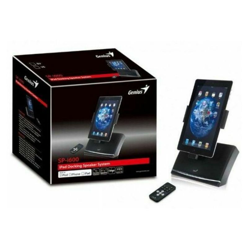 Descripción Genius SP-i600. Canales de salida de audio: 2.0 canales, Potencia estimada RMS: 4 W, Relación señal/ruido (SNR): 70 dB. Auriculares: 3,5 mm. Compatibilidad con bases dock de Apple: iPad,iPhone,iPod. Color del producto: Negro, Indicadores LED: Poder, Control de volumen: Digital. Alimentación: Corriente alterna