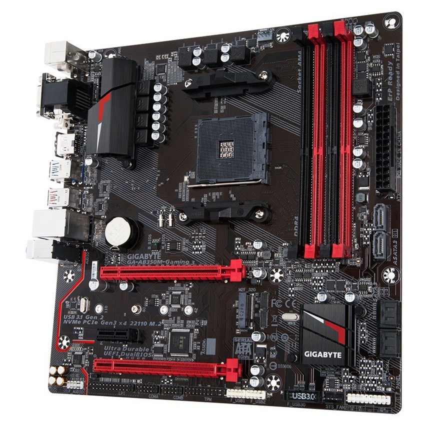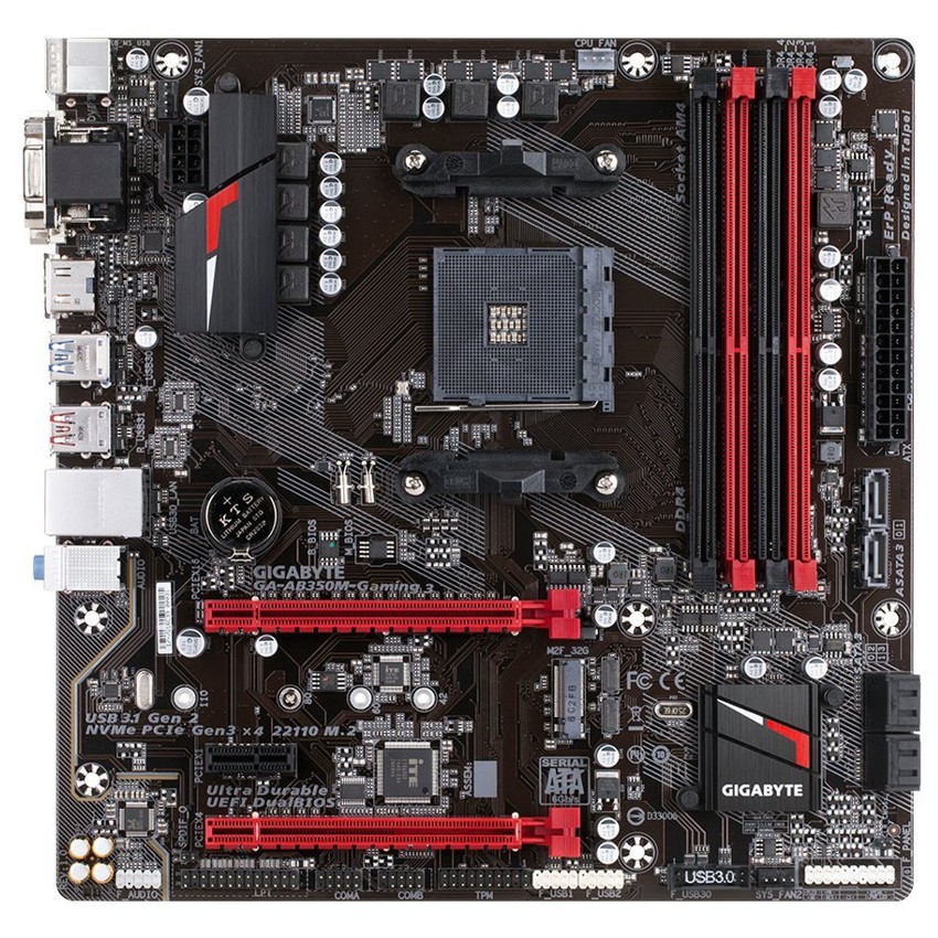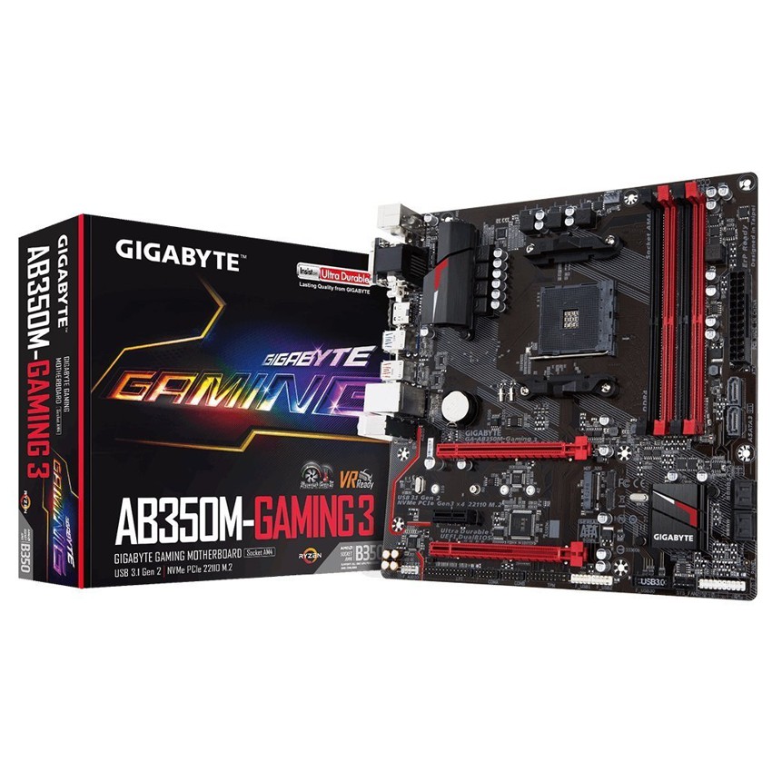 Descripción Gigabyte GA-AB350M-Gaming 3. tipos de memoria compatibles: DDR4-SDRAM, Tipo de ranuras de memoria: DIMM, Velocidades de reloj de memoria soportadas: 2133,2400,2933,3200 MHz. Familia de procesador: AMD, Procesador compatible: Ryzen, Socket de procesador: Socket AM4. Interfaces de disco de almacenamiento soportados: Serial ATA II, Serial ATA III. Tipo de interfaz ethernet: Gigabit Ethernet. Componente para: PC, Familia de componentes de tarjeta madre: AMD, Circuito integrado de tarjeta madre: AMD B350