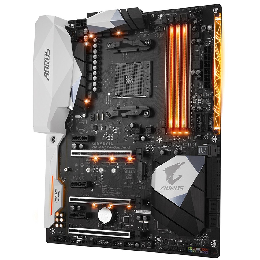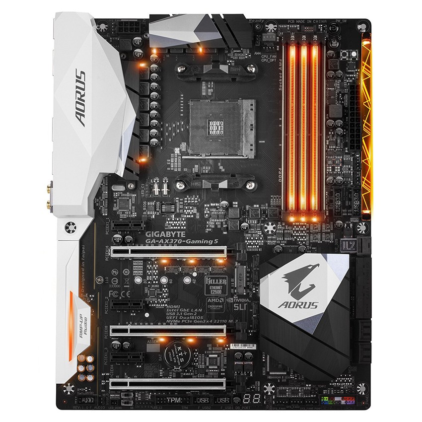 Descripción Gigabyte GA-AX370-GAMING 5. tipos de memoria compatibles: DDR4-SDRAM, Tipo de ranuras de memoria: DIMM, Velocidades de reloj de memoria soportadas: 2133,2400,2933,3200 MHz. Familia de procesador: AMD, Procesador compatible: Ryzen, Socket de procesador: Socket AM4. Controlador LAN: Killer E2500. Componente para: PC, Familia de componentes de tarjeta madre: AMD, Circuito integrado de tarjeta madre: AMD X370. Tipos de BIOS: UEFI AMI, BIOS, tamaño de memoria: 128 MB