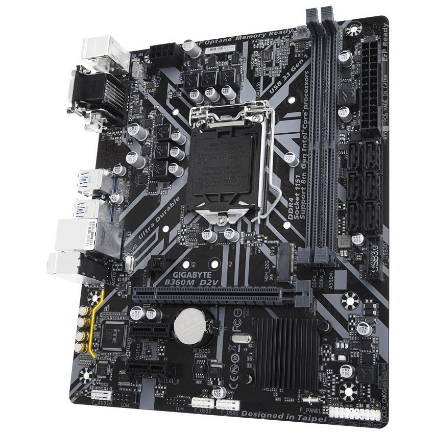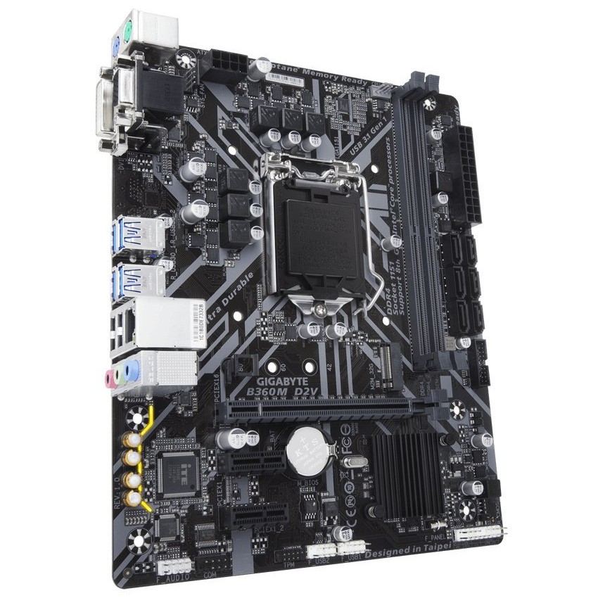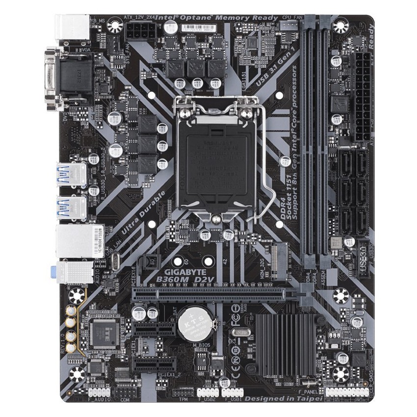 Especificaciones CPU: - Support for 8th Generation Intel® Core? i7 processors/Intel® Core? i5 processors/Intel® Core? i3 processors/Intel® Pentium® processors/ Intel® Celeron® processors in the LGA1151 package - L3 cache varies with CPU - (Please refer "CPU Support List" for more information.) Chipset: - Intel® B360 Express Chipset Memory: - 2 x DDR4 DIMM sockets supporting up to 32 GB of system memory - Dual channel memory architecture - Support for DDR4 2666/2400/2133 MHz memory modules - Support for ECC Un-buffered DIMM 1Rx8/2Rx8 memory modules (operate in non-ECC mode) - Support for non-ECC Un-buffered DIMM 1Rx8/2Rx8/1Rx16 memory modules - Support for Extreme Memory Profile (XMP) memory modules - * To support 2666 MHz or XMP memory, you must install an 8th Generation Intel® Core? i7/i5 processor. - (Please refer "Memory Support List" for more information.) Onboard Graphics: Integrated Graphics Processor-Intel® HD Graphics support: - 1 x D-Sub port, supporting a maximum resolution of 1920x1200@60 Hz - 1 x DVI-D port, supporting a maximum resolution of 1920x1200@60 Hz - * The DVI-D port does not support D-Sub connection by adapter. - Maximum shared memory of 1 GB Audio: - Realtek® ALC887 codec - High Definition Audio - 2/4/5.1/7.1-channel - * To configure 7.1-channel audio, you have to use an HD front panel audio module and enable the multi-channel audio feature through the audio driver. LAN: - Realtek® GbE LAN chip (10/100/1000 Mbit) Expansion Slots: - 1 x PCI Express x16 slot, running at x16 - 2 x PCI Express x1 slots - (All of the PCI Express slots conform to PCI Express 3.0 standard.) Storage Interface: Chipset: - 1 x M.2 connector (Socket 3, M key, type 2242/2260/2280 SATA and PCIe x4/x2 SSD support) - 6 x SATA 6Gb/s connectors - * Refer to "1-7 Internal Connectors," for the installation notices for the M.2 and SATA connectors. - Intel® Optane? Memory Ready USB: Chipset: - 6 x USB 3.1 Gen 1 ports (4 ports on the back panel, 2 ports available through the internal USB header) - 6 x USB 2.0/1.1 ports (2 ports on the back panel, 4 ports available through the internal USB headers) Internal I/O Connectors: - 1 x 24-pin ATX main power connector - 1 x 8-pin ATX 12V power connector - 1 x CPU fan header - 1 x system fan header - 6 x SATA 6Gb/s connectors - 1 x M.2 Socket 3 connector - 1 x front panel header - 1 x front panel audio header - 1 x USB 3.1 Gen 1 header - 2 x USB 2.0/1.1 headers - 1 x Trusted Platform Module (TPM) header (2x6 pin, for the GC-TPM2.0_S module only) - 1 x serial port header - 1 x Clear CMOS jumper Back Panel Connectors: - 1 x PS/2 mouse port - 1 x PS/2 Keyboard port - 1 x D-Sub port - 1 x DVI-D port - 4 x USB 3.1 Gen 1 ports - 2 x USB 2.0/1.1 ports - 1 x RJ-45 port - 3 x audio jacks I/O Controller: - iTE® I/O Controller Chip H/W Monitoring: - Voltage detection - Temperature detection - Fan speed detection - Overheating warning - Fan fail warning - Fan speed control * Whether the fan speed control function is supported will depend on the cooler you install. BIOS: - 1 x 128 Mbit flash - Use of licensed AMI UEFI BIOS - PnP 1.0a, DMI 2.7, WfM 2.0, SM BIOS 2.7, ACPI 5.0 Unique Features: - Support for APP Center * Available applications in APP Center may vary by motherboard model. Supported functions of each application may also vary depending on motherboard specifications. - 3D OSD - @BIOS - AutoGreen - Cloud Station - EasyTune - Fast Boot - Game Boost - ON/OFF Charge - Platform Power Management - RGB Fusion - Smart Backup - Smart Keyboard - Smart TimeLock - Smart HUD - System Information Viewer - USB Blocker - V-Tuner - Support for Q-Flash - Support for Xpress Install Bundle Software: - Norton® Internet Security (OEM version) Operating System: - Support for Windows 10 64-bit Form Factor: - Micro ATX Form Factor; 22.6cm x 18.5cm