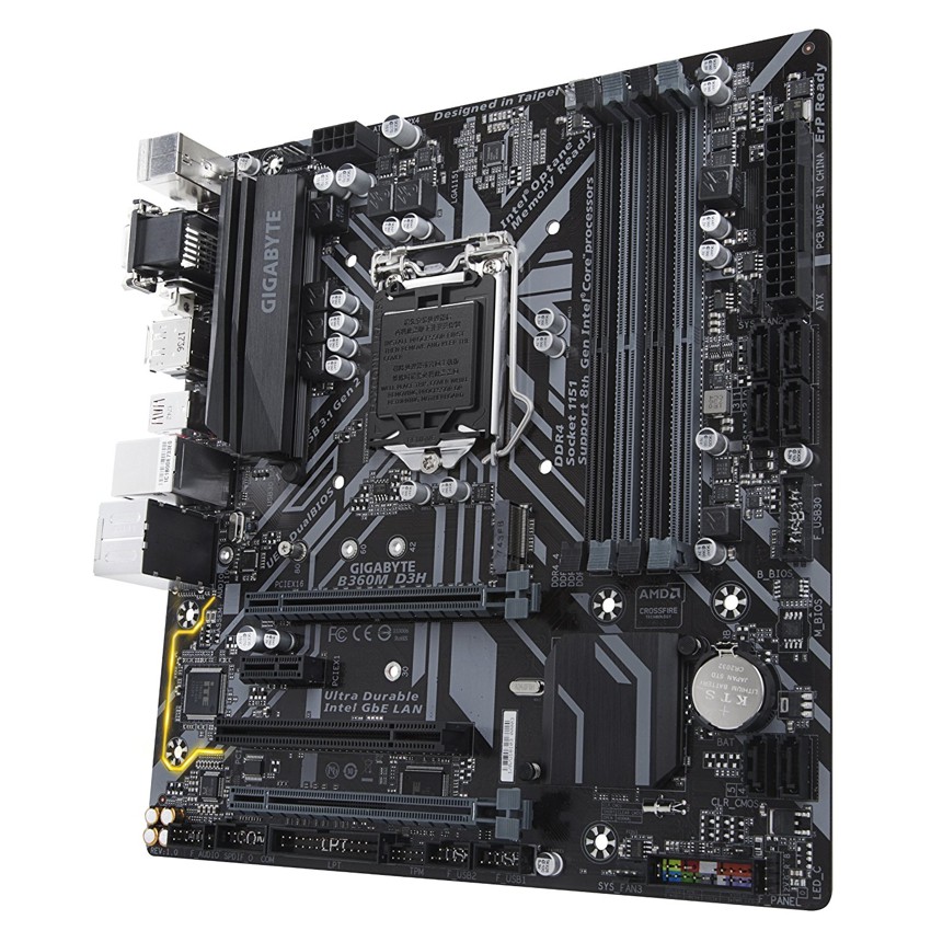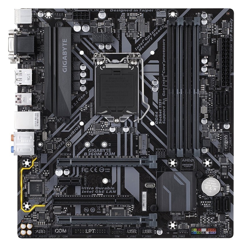 Especificaciones CPU Compatibilidad con procesadores Intel® Core ? i7 de octava generación / procesadores Intel® Core ? i5 / procesadores Intel® Core ? i3 / procesadores Intel® Pentium® / procesadores Intel® Celeron® en el paquete LGA1151 - La memoria caché L3 varía con la CPU (Consulte "Lista de compatibilidad de CPU" para obtener más información). Chipset - Chipset Intel® B360 Express Memoria - 4 zócalos DIMM DDR4 que admiten hasta 64 GB de memoria del sistema - Arquitectura de memoria de doble canal - Soporte para módulos de memoria DDR4 2666/2400/2133 MHz - Compatibilidad con módulos de memoria DIMM 1Rx8 / 2Rx8 sin amortiguación ECC (funcionan en modo no ECC) - Compatibilidad con módulos de memoria DIMM no amortiguado ECC 1Rx8 / 2Rx8 / 1Rx16 - Soporte para módulos de memoria Extreme Memory Profile (XMP) - * Para admitir 2666 MHz o memoria XMP, debe instalar un procesador Intel® Core ? i7 / i5 de octava generación. (Consulte "Lista de soporte de memoria" para obtener más información). Gráficos a bordo Procesador de gráficos integrado: Intel® HD Graphics support: - 1 x puerto D-Sub, que admite una resolución máxima de 1920x1200 a 60 Hz - 1 x puerto DVI-D, que admite una resolución máxima de 1920x1200 a 60 Hz - * El puerto DVI-D no es compatible con la conexión D-Sub por adaptador. - 1 x DisplayPort, compatible con una resolución máxima de 4096x2304 @ 60 Hz - * Soporte para la versión DisplayPort 1.2, HDCP 2.2 y HDR. - 1 puerto HDMI x, que admite una resolución máxima de 4096x2160 @ 30 Hz - * Soporte para la versión HDMI 1.4 y HDCP 2.2. Soporte para hasta 3 pantallas al mismo tiempo Memoria compartida máxima de 1 GB Audio - Códec Realtek® ALC892 - Audio de alta definición - 2/4 / 5.1 / 7.1 canales - Soporte para salida S / PDIF LAN - Intel® GbE LAN chip (10/100/1000 Mbit) Ranuras de expansión - 1 x ranura PCI Express x16, funcionando a x16 (PCIEX16) - * Para un rendimiento óptimo, si solo se va a instalar una tarjeta gráfica PCI Express, asegúrese de instalarla en la ranura PCIEX16. - 1 x ranura PCI Express x16, ejecutándose en x4 (PCIEX4) - 1 x ranura PCI Express x1 - (Todas las ranuras PCI Express cumplen con el estándar PCI Express 3.0). - 1 x ranura PCI Interfaz de almacenamiento - 1 x conector M.2 (Socket 3, clave M, tipo 2242/2260/2280/22110 SATA y soporte PCIe x4 / x2 SSD) - 6 x conectores SATA 6Gb / s Intel® Optane ? Memory Ready Tecnología multi-gráfica - Compatibilidad con las tecnologías AMD Quad-GPU CrossFire ? y AMD CrossFire ? de 2 vías USB - 1 x puerto USB Type-C ? en el panel posterior, con soporte USB 3.1 Gen 1 - 1 x puerto USB 3.1 Gen 2 tipo A (rojo) en el panel posterior - 4 puertos USB 3.1 Gen 1 (2 puertos en el panel posterior, 2 puertos disponibles a través del encabezado USB interno) - 6 x puertos USB 2.0 / 1.1 (2 puertos en el panel posterior, 4 puertos disponibles a través de los conectores USB internos) Conectores de E / S internos - Conector de alimentación principal ATX de 1 x 24 pines - Conector de alimentación ATX 12V de 1 x 8 pines - 1 x encabezado del ventilador de la CPU - 3 x encabezados de ventiladores del sistema - 1 x encabezado de tira LED RGB - 1 x M.2 conector de enchufe 3 - 6 x conectores SATA 6Gb / s - 1 x encabezado del panel frontal - 1 x encabezado de audio del panel frontal - 1 x encabezado de salida S / PDIF - 1 x USB 3.1 Gen 1 encabezado - 2 x USB 2.0 / 1.1 encabezados - 1 encabezado de módulo de plataforma confiable (TPM) (pin 2x6, solo para el módulo GC-TPM2.0_S) - 1 x encabezado de puerto serie - 1 x encabezado de puerto paralelo - 1 x Puente CMOS transparente Conectores del panel posterior - 1 x teclado PS / 2 / puerto de mouse - 1 x puerto D-Sub - 1 x puerto DVI-D - 1 x DisplayPort - 1 x puerto HDMI - 1 x puerto USB Type-C ?, con soporte USB 3.1 Gen 1 - 1 x puerto USB 3.1 Gen 2 tipo A (rojo) - 2 x puertos USB 3.1 Gen 1 - 2 puertos USB 2.0 / 1.1 - 1 x puerto RJ-45 - 6 x conectores de audio Controlador de E / S - Chip controlador de E / S iTE® Monitoreo H / W - Detección de voltaje - Detección de temperatura - Detección de velocidad del ventilador - Advertencia de sobrecalentamiento - Advertencia de falla del ventilador - Control de velocidad del ventilador - * Que la función de control de velocidad del ventilador sea compatible dependerá del enfriador que instale. BIOS - Flash de 2 x 128 Mbit - Uso de BIOS AMI UEFI con licencia - Soporte para DualBIOS ? - PnP 1.0a, DMI 2.7, WfM 2.0, SM BIOS 2.7, ACPI 5.0