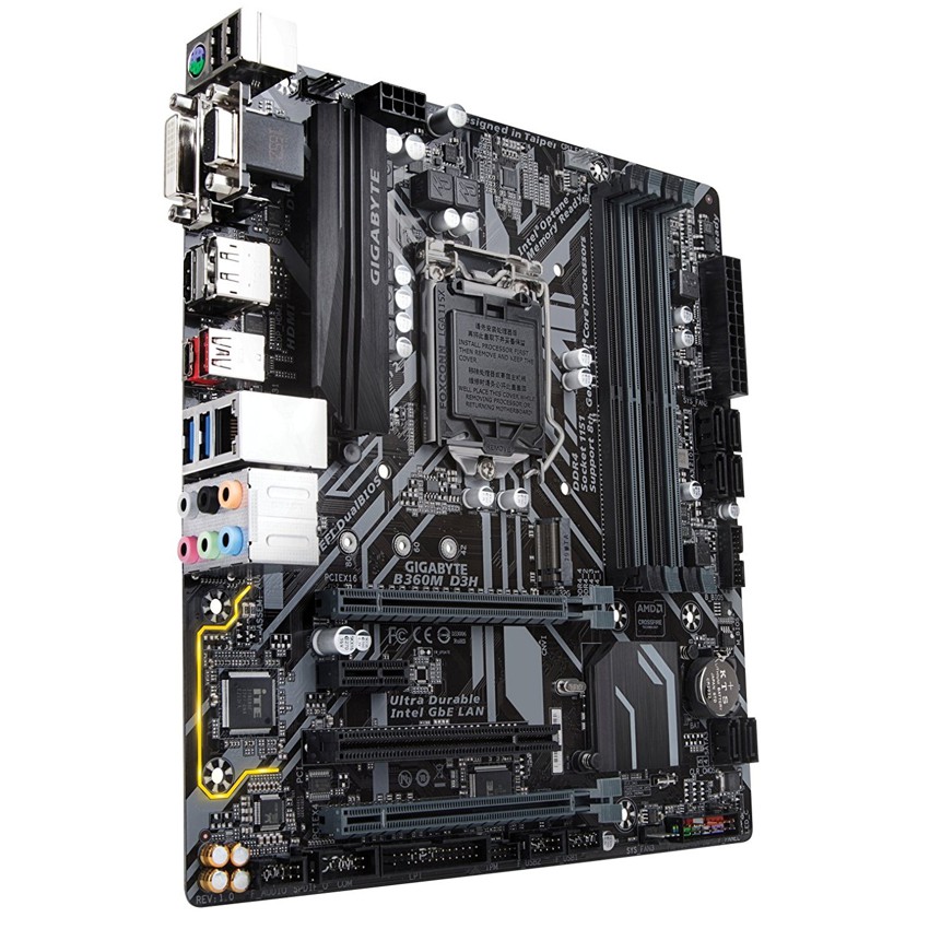 Descripción Admite procesadores Intel® Core ? de octava generación Dual Channel Non-ECC Unbuffered DDR4 Nuevo diseño híbrido de PWM digital Condensadores de audio de alta calidad y protector de ruido de audio con iluminación LED Trace Path Ultra-Fast M.2 con interfaz PCIe Gen3 X4 y SATA RGB FUSION es compatible con tiras de LED RGB en 7 colores Intel® Native USB 3.1 Gen2 USB tipo-A LAN Intel® GbE con el software cFosSpeed Internet Accelerator CEC 2019 Ready, ahorre energía tan fácil como One Click Smart Fan 5 presenta sensores de temperatura múltiples y encabezados de ventiladores híbridos con FAN STOP Diseño de resistencias anti-azufre Ultra Durable ? 25KV ESD y 15KV Surge LAN Protection Intel® Optane ? Memory Ready GIGABYTE UEFI DualBIOS ?