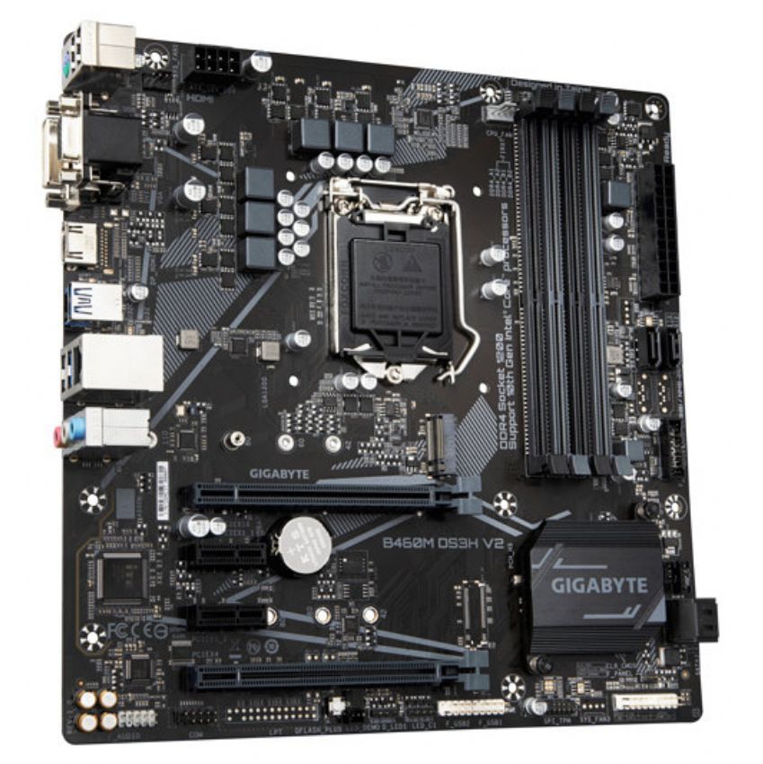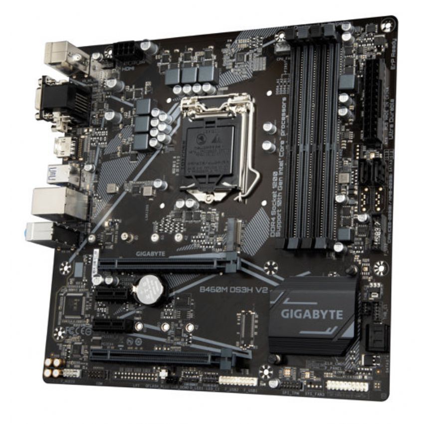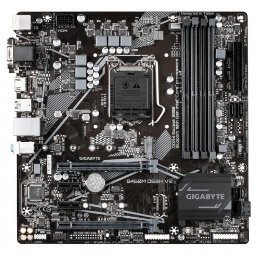 Descripción Gigabyte B460M DS3H V2. Fabricante de procesador: Intel, Socket de procesador: LGA 1200, Procesador compatible: Intel® Core™ i3, Intel Core i5, Intel Core i7, Intel Core i9. tipos de memoria compatibles: DDR4-SDRAM, Tipo de ranuras de memoria: DIMM, Velocidades de reloj de memoria soportadas: 2133,2400,2666,2933 MHz. Interfaces de disco de almacenamiento soportados: M.2, PCI Express 3.0, Serial ATA III, USB 2.0, USB 3.2 Gen 1 (3.1 Gen 1), Tipos de unidades de almacenamiento admitidas: HDD & SSD. Soporte para proceso paralelo: 2-Way CrossFireX. Tipo de interfaz ethernet: Gigabit Ethernet