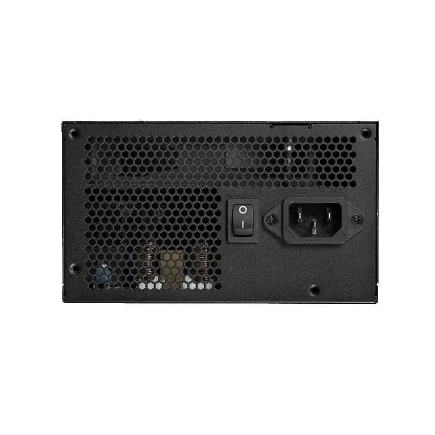 Especificaciones Potencia nominal: 700 W Voltaje de entrada AC: 100 - 240 V Frecuencia de entrada AC: 47 - 63 Hz Corriente de entrada: 10 Corrección del factor de potencia tipo (PFC): Activo Potencia combinada (3,3 V): 130 W Potencia combinada (+12 V): 648 W Potencia combinada (+5 V): 130 W Potencia combinada (-12V): 6 W Potencia combinada (+5 VSB): 12,5 W Corriente máxima de salida (+3.3V): 22 A Corriente máxima de salida (+12V): 54 A Corriente máxima de salida (+5V): 18 A Corriente máxima de salida (-12V): 0,3 A Corriente máxima de salida (+5Vsb): 2,5 A Eficiencia: 85% Funciones de protección de poder: Over power, Sobrevoltaje, Cortocircuito, Bajo voltaje Diámetro de ventilador: 12 cm Número de ventiladores: 1 Ubicación de ventilador: Superior Tipo de enfriamiento: Activo Alimentador de energía para tarjeta madre: 20+4 pin ATX Número de conectores de energía SATA: 7 Conectores de poder (4 pin) periferales (Molex): 3 Conectores de poder PCI Express (6 + 2 pin): 4 CPU conector de alimentación (4 +4 pines): Si Conector de poder ATX (20 + 4 pin): Si Conector Express PCI: Si Conector a unidad de disquetes: Si Factor de forma: ATX Utilizar con: PC Versión ATX: 2.3 Tecnología de rodamientos: Pelota Interruptor de encendido/apagado integrado: Si Tiempo medio entre fallos: 100000 h Color del producto: Negro Ancho: 150 mm Profundidad: 140 mm Altura: 86 mm Certificación 80 PLUS: 80 PLUS Bronze Certificación: CE/BSMI/EAC/TUV/FCC/UL/RCM Manual de usuario: Si