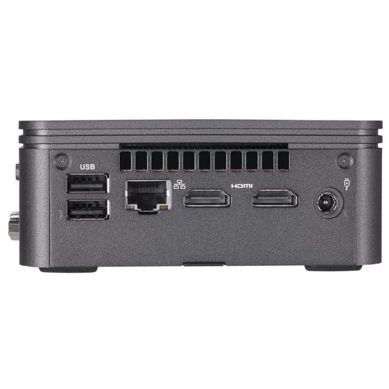 Descripción Gigabyte GB-BRI3H-10110. Tipo de producto: Mini PC barebone. Socket de procesador: BGA 1528. Número de ranuras de memoria: 2, Memoria interna máxima: 64 GB. Tipos de unidades de almacenamiento admitidas: HDD & SSD, Interfaz de unidad de almacenamiento: M.2, PCI Express, SATA. Ethernet LAN (RJ-45) cantidad de puertos: 1. Wi-Fi estándares: Wi-Fi 5 (802.11ac), Versión de Bluetooth: 4.2. Fuente de alimentación: 90 W