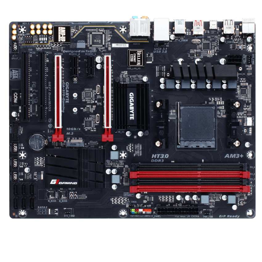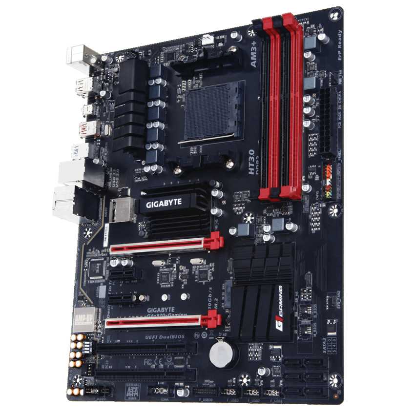 Descripción Gigabyte GA-970-GAMING. tipos de memoria compatibles: DDR3-SDRAM, Tipo de ranuras de memoria: DIMM, Canales de memoria: Dual. Familia de procesador: AMD, Procesador compatible: AMD A, Socket de procesador: Socket AM3+. Interfaces de unidad de disco duro soportadas: SATA. Conector USB: USB Type-A, USB Type-C. Tipo de interfaz ethernet: Gigabit