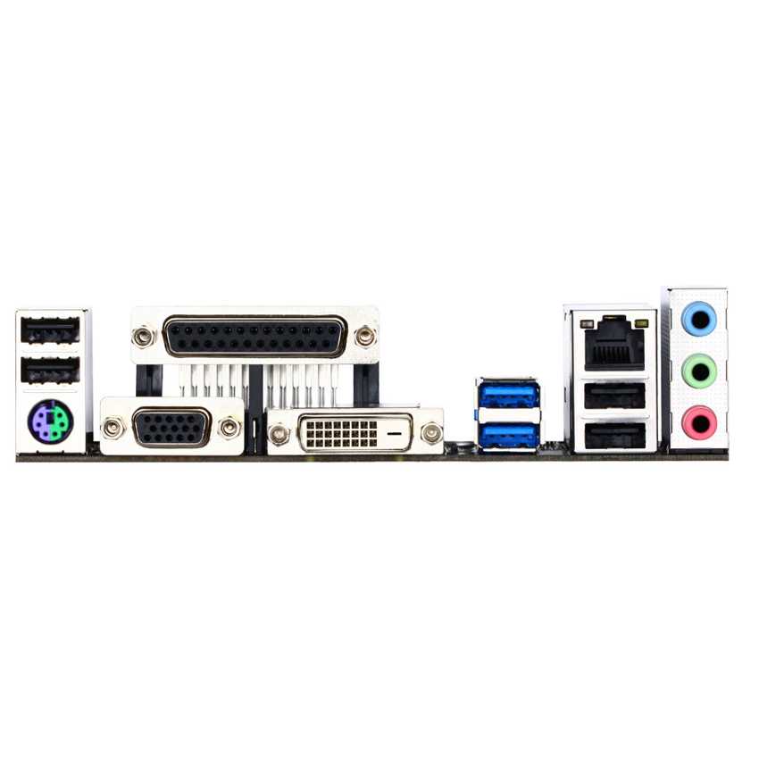 Back Panel Connectors: 1 x PS/2 keyboard/mouse port 1 x parallel port 1 x D-Sub port 1 x DVI-D port 2 x USB 3.0/2.0 ports 4 x USB 2.0/1.1 ports 1 x RJ-45 port 3 x audio jacks (Line In, Line Out, Mic In)