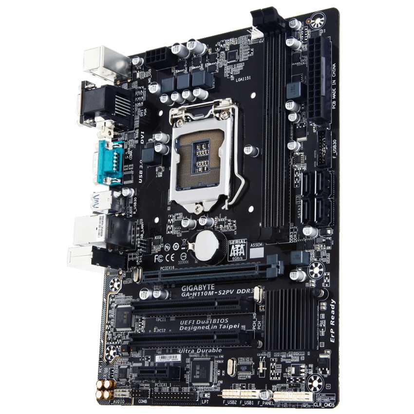 Descripción Gigabyte GA-H110M-S2PV DDR3 (rev. 1.0). tipos de memoria compatibles: DDR3-SDRAM, DDR3L-RS-SDRAM, Tipo de ranuras de memoria: DIMM, Canales de memoria: Dual. Familia de procesador: Intel, Procesador compatible: Celeron, Core i3, Core i5, Core i7, Pentium. Interfaces de unidad de disco duro soportadas: SATA. Conector USB: USB Type-A. Tipo de interfaz ethernet: Gigabit Ethernet
