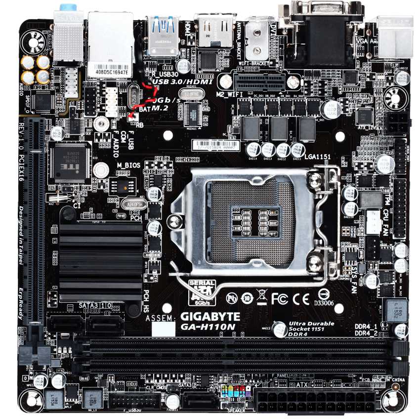 Descripción Gigabyte GA-H110N. tipos de memoria compatibles: DDR4-SDRAM, Tipo de ranuras de memoria: DIMM, Canales de memoria: Dual. Familia de procesador: Intel, Procesador compatible: Celeron, Core i3, Core i5, Core i7, Pentium. Interfaces de unidad de disco duro soportadas: SATA. Tipo de interfaz ethernet: Gigabit Ethernet. Componente para: PC, Familia de componentes de tarjeta madre: Intel, Circuito integrado de tarjeta madre: Intel H110