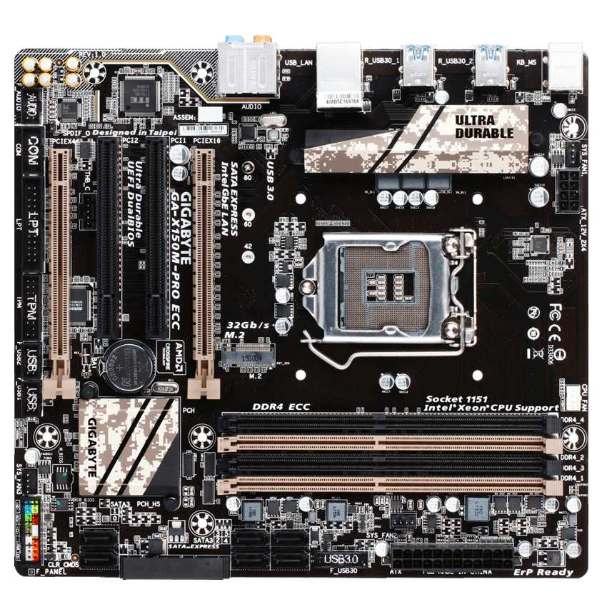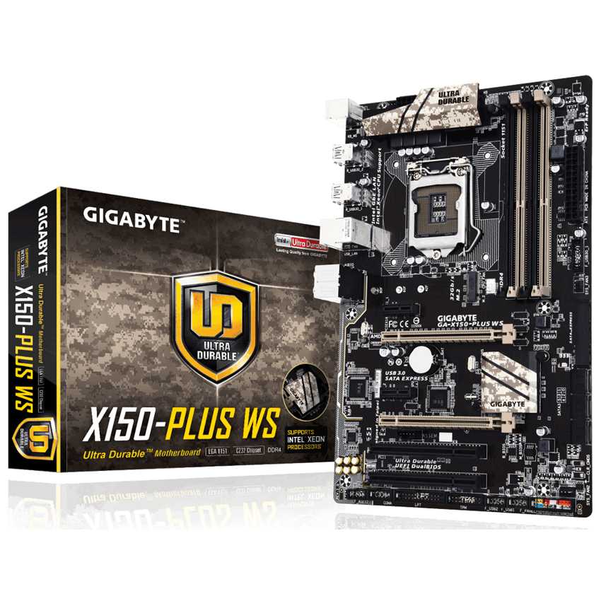 Descripción Gigabyte GA-X150-PLUS WS. tipos de memoria compatibles: DDR4-SDRAM, Tipo de ranuras de memoria: DIMM, Canales de memoria: Dual. Familia de procesador: Intel, Procesador compatible: Celeron, Core i3, Pentium, Xeon, Socket de procesador: LGA1151. Interfaces de unidad de disco duro soportadas: M.2, Serial ATA III. Tipo de interfaz ethernet: Gigabit. Componente para: PC, Familia de componentes de tarjeta madre: Intel, Circuito integrado de tarjeta madre: Intel C232
