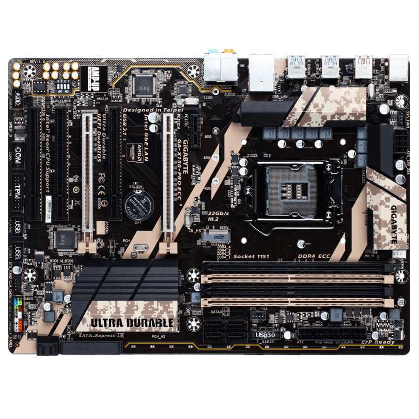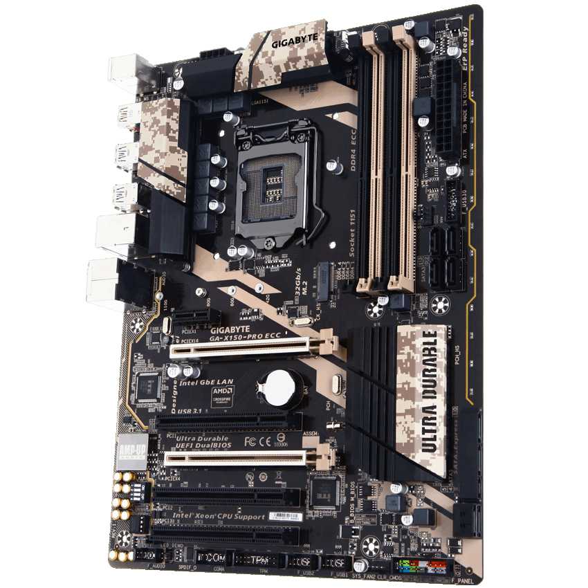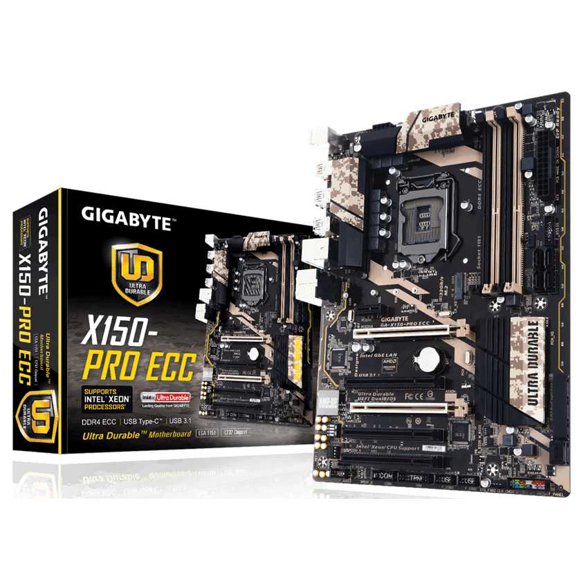 Descripción Gigabyte GA-X150-PRO ECC (rev. 1.0). tipos de memoria compatibles: DDR4-SDRAM, Tipo de ranuras de memoria: DIMM, Canales de memoria: Dual. Familia de procesador: Intel, Procesador compatible: Celeron, Pentium, Xeon, Socket de procesador: LGA1151. Interfaces de unidad de disco duro soportadas: SATA. Tipo de interfaz ethernet: Gigabit Ethernet. Componente para: PC, Familia de componentes de tarjeta madre: Intel, Circuito integrado de tarjeta madre: Intel C232