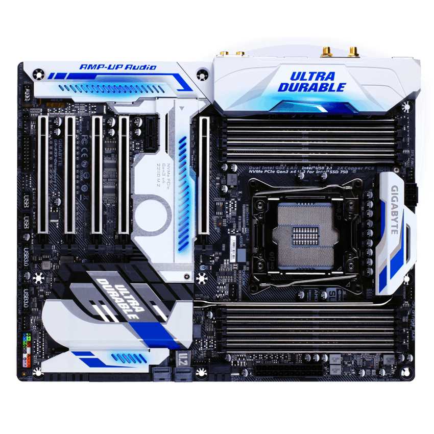 DescripciónIntel® Thunderbolt? 3 Certified X99 Motherboard Soporta procesadores Intel® Core? i7 6950X edición extrema Quad Channel certificado/ 8DIMM DDR4 Non-ECC Unbuffered Soporte para Intel® USB 3.1 con USB Tipo-C? & PD 2.0 36W Soporta multigráficas Premium 3-Way PCIe x16 Interfaz M.2 NVMe PCIe Gen3 x4 22110 & Interfaz U.2 para Intel® SSD 750 Conector SATA Express para una transferencia de datos de hasta 10Gb/s 115dB SNR HD Audio con función de amplificador de audio trasero Luz ambiental LED con multicolores RGB LAN Dual Intel® GbE con software cFosSpeed Internet Accelerator Slots Ultra Durable blindados con metal sobre los PCIe y los slots DDR Resistores Ultra Durable anti-azufre para que tengan una vida útil más larga Conectores Ultra Durable anti-moho en la parte I/O Conector dual híbrido de ventilador con PWM preciso/ Control de tensión para la bomba de agua y ventilador Puertos USB GIGABYTE UEFI DualBIOS? con Q-Flash Plus APP Center, que incluye las utilidades EasyTune? y Cloud Station? Conexión dual inalámbrica Intel® 802.11ac y Bluetooth® 4.2 Panel posterior DisplayPort-In para futuras actualizacionesEspecificacionestipos de memoria compatibles: DDR4-SDRAMTipo de ranuras de memoria: DIMMNúmero de ranuras de memoria: 8Canales de memoria: CuadránguloNo ECC: SiVelocidades de reloj de memoria soportadas: 2133,2400,2666,2800,3000,3200,3333,3400,3600 MHzMemoria interna máxima: 256 GBFamilia de procesador: IntelProcesador compatible: Core i7Socket de procesador: LGA 2011-v3USB 2.0, conectores: 2Conectores USB 3.0 ( 3.1 Gen 1 ): 2Interfaces de unidad de disco duro soportadas: M.2, SATANúmero de conectores SATA: 10S/PDIF, conector de salida: SiConector de ventilador CPU: SiConector de potencia ATX (24 pines): SiNúmero de conectores de poder EATX: 1Conector de audio en panel frontal: SiConector TPM: SiNúmero de ranuras M.2 (M): 1Número de conectores SATA Express: 1Encabezados Thunderbolt: 1Cantidad de puertos tipo A USB 3.0 (3.1 Gen 1): 5Cantidad de puertos tipo A USB 3.1 (3.1 Gen 2): 1Cantidad de puertos tipo C USB 3.1 (3.1 Gen 2): 1Ethernet LAN (RJ-45) cantidad de puertos: 2Puerto de ratón PS/2: 1Micrófono, jack de entrada: SiCantidad de DisplayPorts: 1Versión HDMI: 1.1Ethernet: SiWifi: SiTipo de interfaz ethernet: Gigabit EthernetBluetooth: SiWi-Fi estándares: IEEE 802.11a, IEEE 802.11ac, IEEE 802.11b, IEEE 802.11g, IEEE 802.11nVersión de Bluetooth: 4.2Componente para: PCFamilia de componentes de tarjeta madre: IntelCircuito integrado de tarjeta madre: Intel X99Tarjeta madre, factor de forma: ATXCanales de salida de audio: 7.1Niveles RAID: 0, 1, 5, 10Sistema operativo Windows soportado: SiSoporte para proceso paralelo: 2-Way CrossFireX, 2-Way SLI, 3-Way CrossFireX, 3-Way SLI, Quad-GPU CrossFireX, Quad-GPU SLIPCI Express x1 (Gen 2.x) ranuras: 1Ranuras x4 PCI Express: 1Ranuras PCI Express x8 (Gen 3.x): 1Ranuras x16 PCI Express: 3Tipos de BIOS: UEFI AMIBIOS, tamaño de memoria: 256 MBVersión ACPI: 5.0Jumper Clear CMOS: SiAncho: 30,5 cmProfundidad: 24,4 cmSoftware incluido: Norton® Internet Security (OEM version) Intel® Smart Response Technology cFosSpeedOtras características: 3D OSD @BIOS Ambient LED AutoGreen BIOS Setup Color Temperature Cloud Station EasyTune Easy RAID Fast Boot ON/OFF Charge Platform Power Management Smart TimeLock Smart Keyboard Smart Backup System Information Viewer USB Blocker V-Tuner Q-Flash Smart Switch Xpress Install