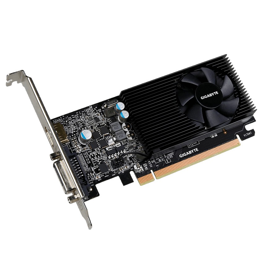 Descripción Gigabyte GV-N1030D5-2GL. Familia de procesadores de gráficos: NVIDIA, Procesador gráfico: GeForce GT 1030, Máxima resolución: 4096 x 2160 Pixeles. Gráficos discretos memoria del adaptador: 2 GB, Tipo de memoria de adaptador gráfico: GDDR5, Ancho de datos: 64 bit. Tipo de interfaz: PCI Express x16 3.0, Versión HDMI: 2.0b. Tipo de enfriamiento: Activo, Número de ventiladores: 1 fan(s), Factor de forma: LP. Suministro de energía al sistema mínimo: 300 W