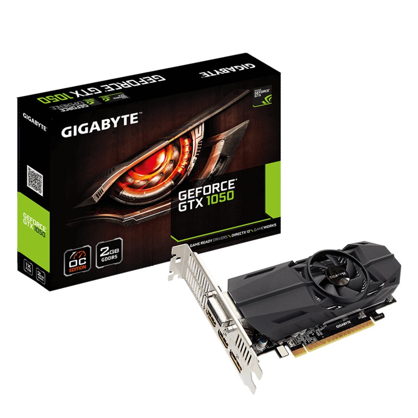 Descripción Gigabyte GeForce GTX 1050 OC Low Profile 2G. Familia de procesadores de gráficos: NVIDIA, Procesador gráfico: GeForce GTX 1050, Frecuencia del procesador: 1366 MHz. Gráficos discretos memoria del adaptador: 2 GB, Tipo de memoria de adaptador gráfico: GDDR5, Ancho de datos: 128 bit, Velocidad de memoria del reloj: 7008 MHz. Máxima resolución: 7680 x 4320 Pixeles. Versión DirectX: 12.0, Versión OpenGL: 4.5, Dual Link DVI. Tipo de interfaz: PCI Express x16 3.0. Tipo de enfriamiento: Activo