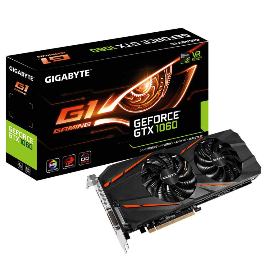 Descripción Gigabyte GeForce GTX 1060 G1 Gaming 6G (rev. 2.0). Familia de procesadores de gráficos: NVIDIA, Procesador gráfico: GeForce GTX 1060, Máxima resolución: 7680 x 4320 Pixeles. Gráficos discretos memoria del adaptador: 6 GB, Tipo de memoria de adaptador gráfico: GDDR5, Ancho de datos: 192 bit. Tipo de interfaz: PCI Express x16 3.0, Versión HDMI: 2.0b, Versión de DisplayPort: 1.4. Versión DirectX: 12.0, Versión OpenGL: 4.5. Tipo de enfriamiento: Activo, Factor de forma: ATX, Color del producto: Negro